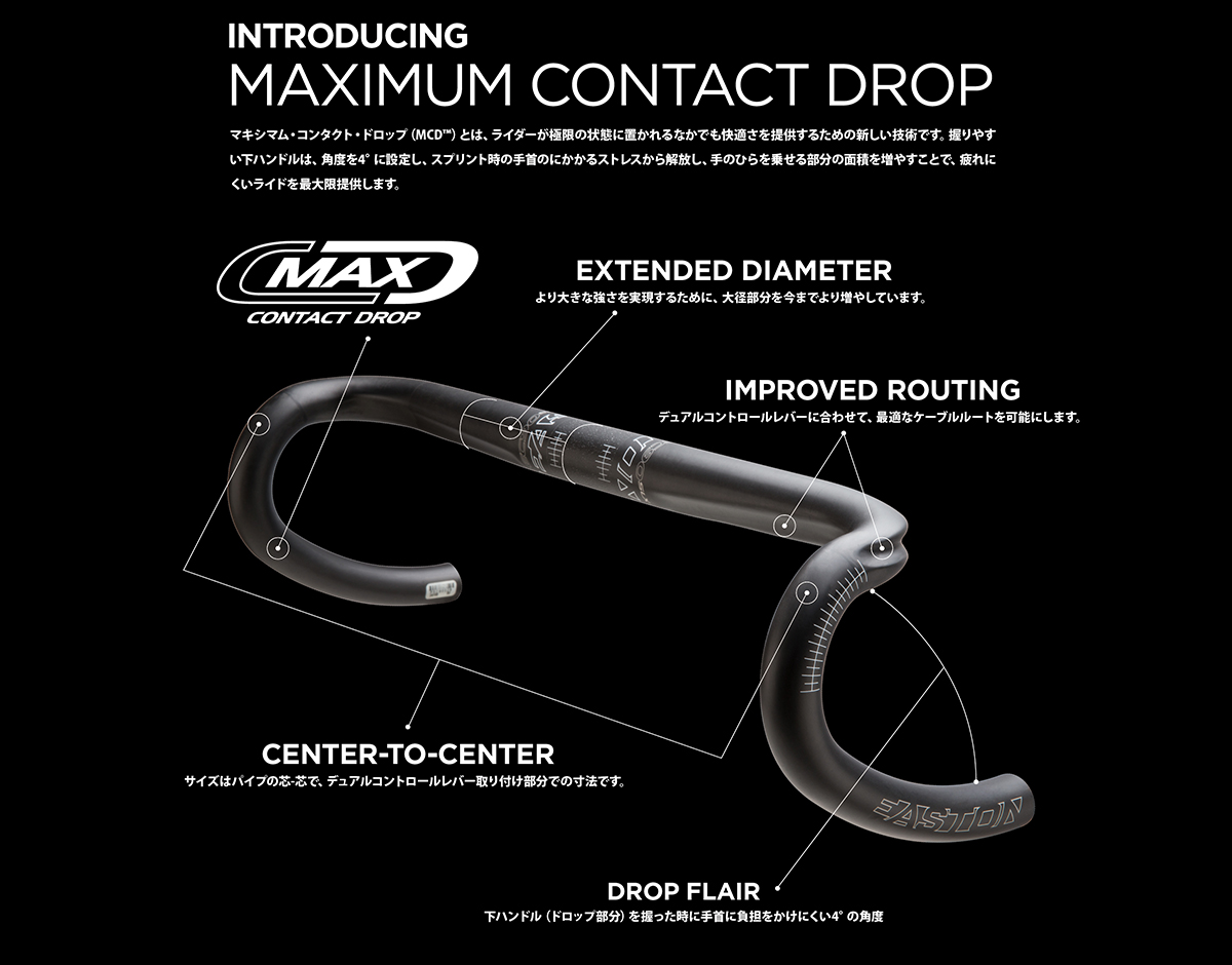 イーストンの最新ハンドルバーに採用されたドロップ形状が、この「MCD」。