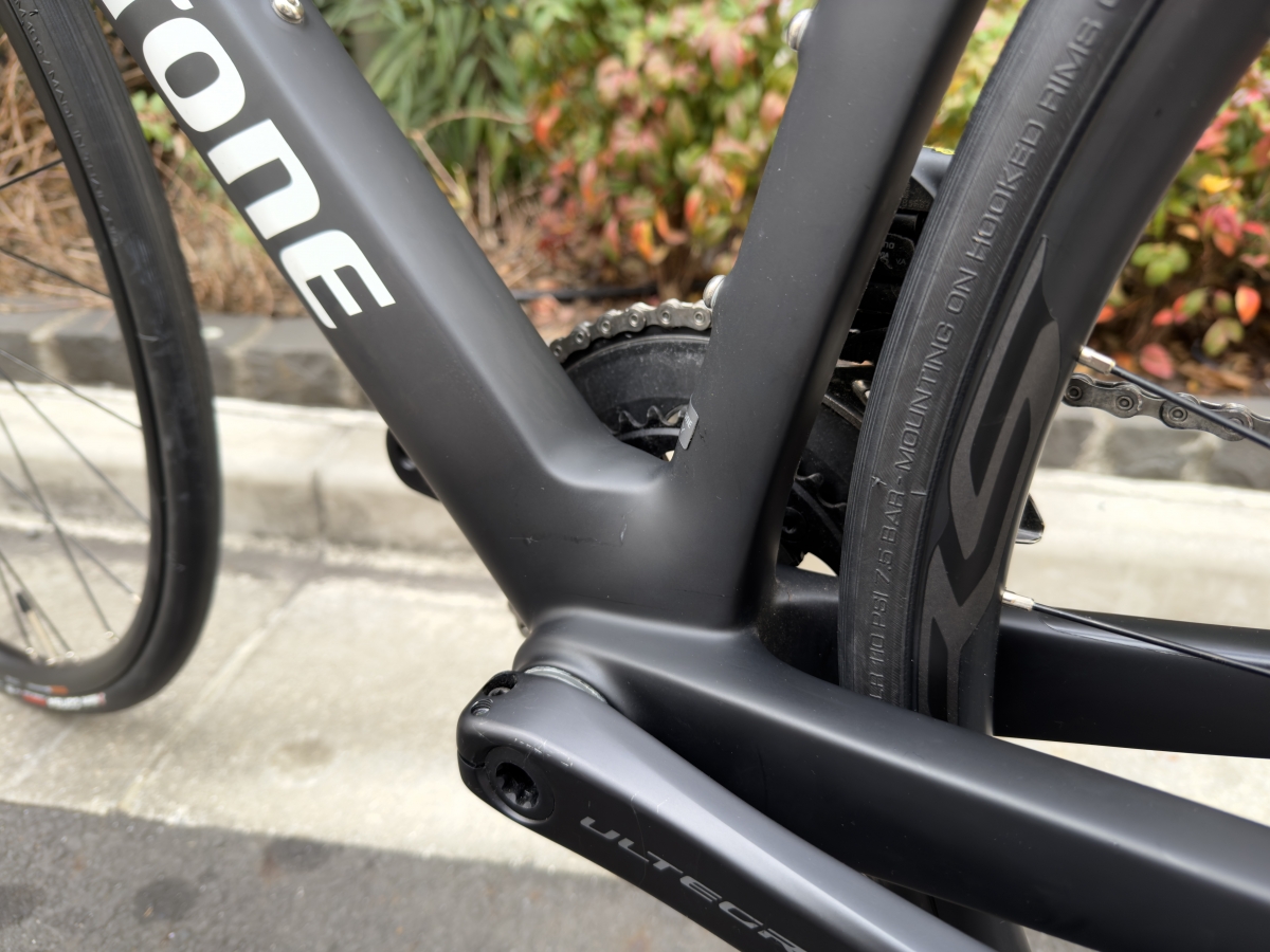 トラックバイクのジオメトリやテクノロジーを継承しているだけあり、剛性が問われるヘッドチューブやBB周りはさすがのボリューム。しっかりとライダーのパワーを自転車へ、走りへと伝えてくれるフレーム形状で、申し分のない高剛性となっています。タイヤクリアランスは30cまで対応。