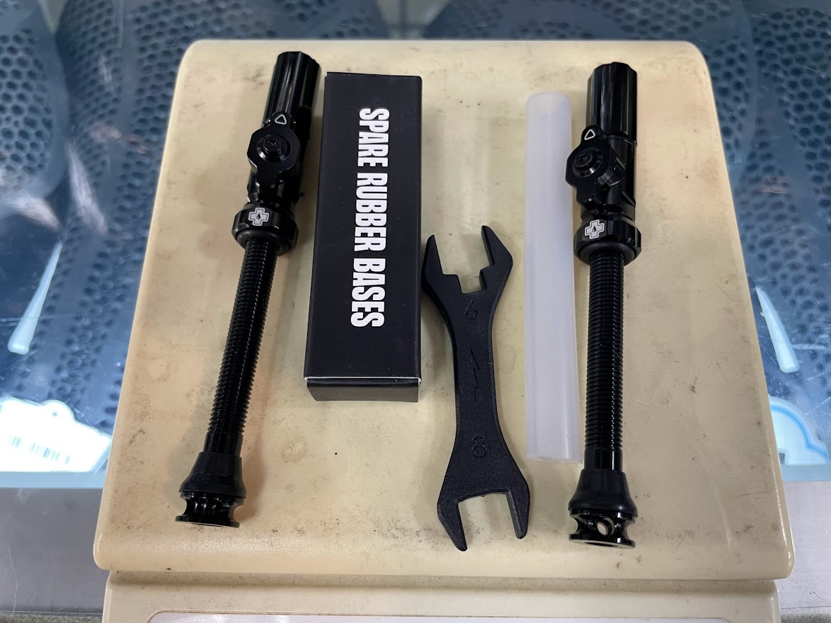付属品はバルブ本体が二本、リムに密着させるラバーベースが二種類、取付用スパナが一本、シーラント注入用チューブが一本。