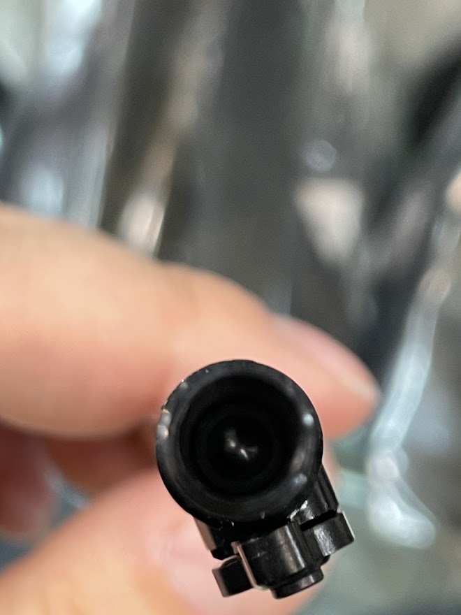しかしステム先端部分が微妙に削られており、これによりバルブ側Oリングとしっかり密着するようになっているので、他のチューブレスバルブ用ステムとの互換性はないと考えた方が良いでしょう。