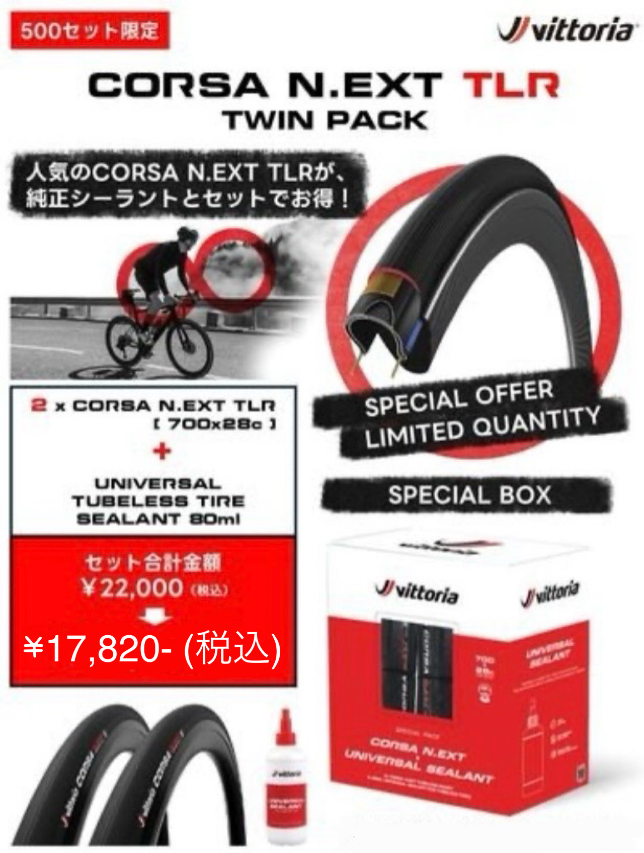 ヴィットリアコルサ・ネクスト TLR 700×28c ×2本と80mlのシーラント1本がセットになったスペシャルパックが超お得!!!