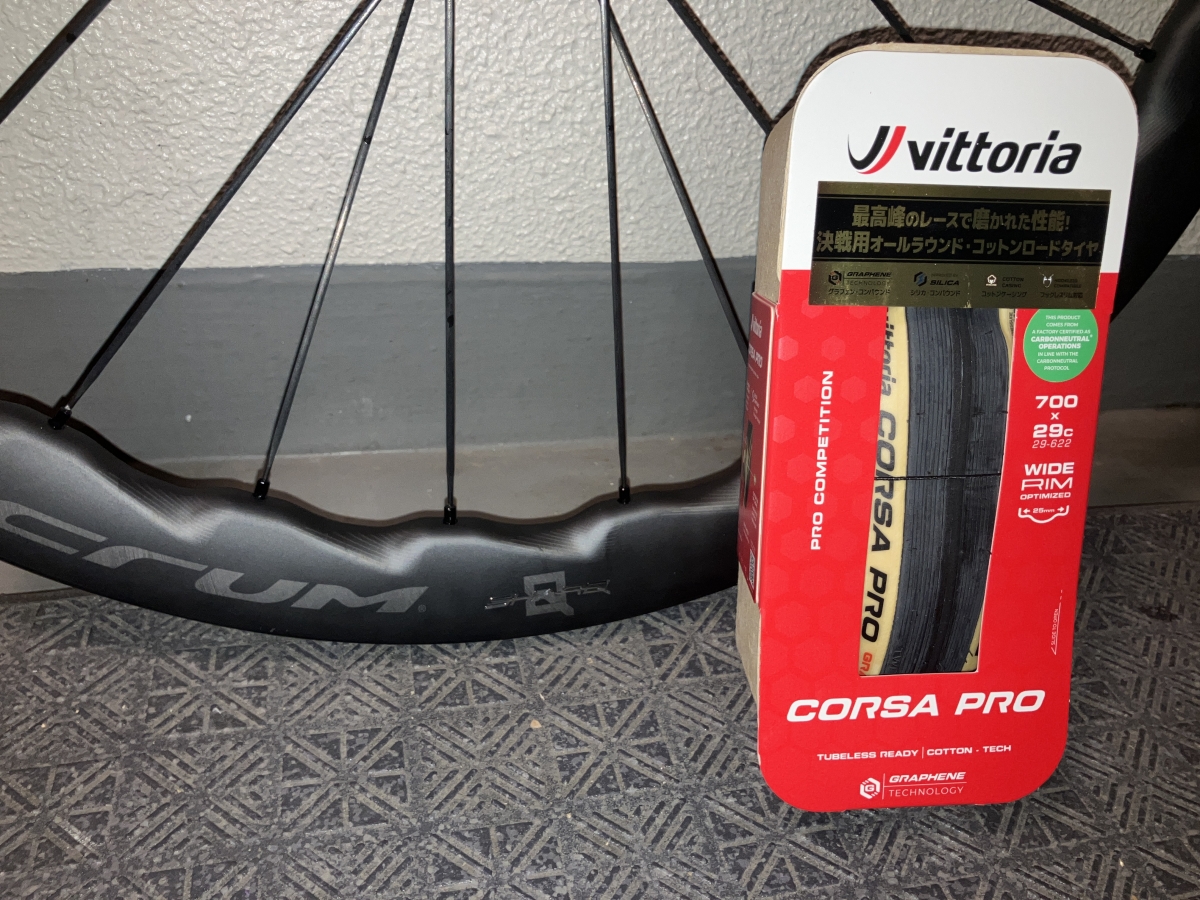 リム内幅19mmのホイールに履かせた時とはまるで別物のタイヤかと思う、しかし同じ28cのCorsa Pro。驚きの変化でしたね。