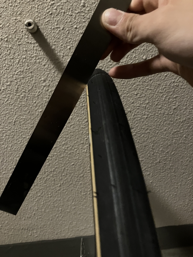 しかしながら、28cタイヤを25mmリムに履くとトレッド幅が足りない!