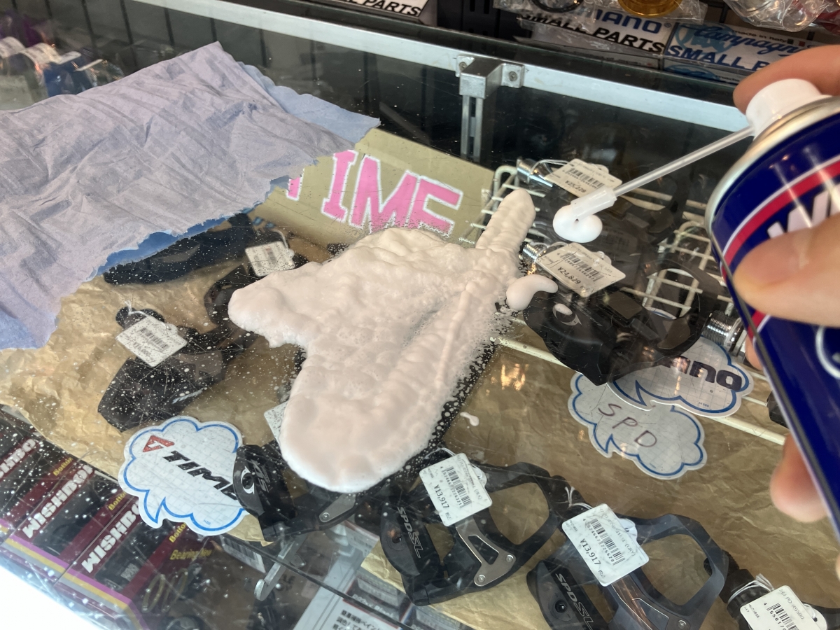 チェーンクリーナーで溶かして馴染ませた油汚れを、フォーミングマルチクリーナーで浮かせて落としきるコンボ洗浄になります!