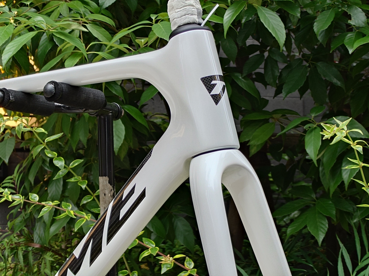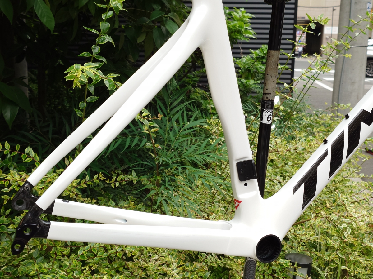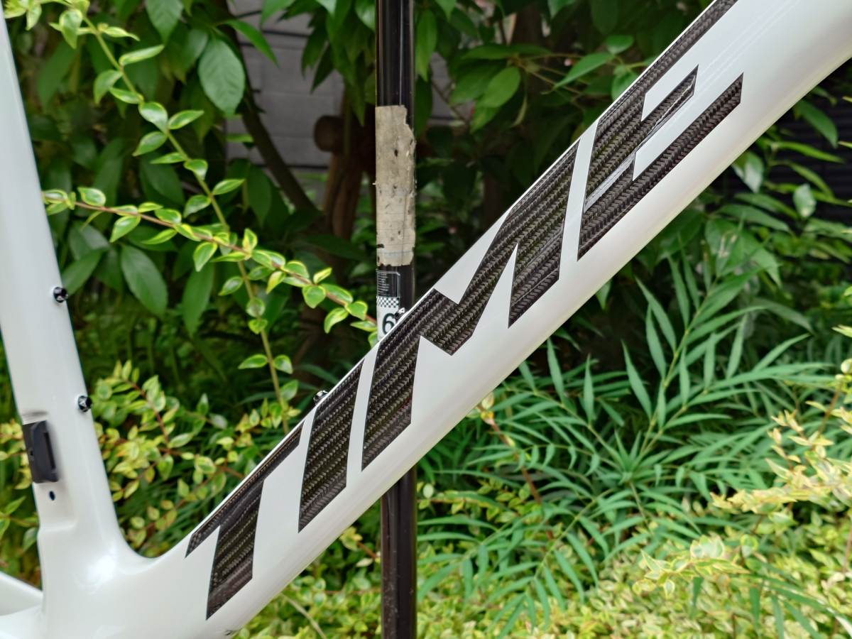 パールホワイトの窓から見えるヌードカーボンのキレイな折り目。美しすぎるレーシングフレームTIME SCYLONが遂にアサゾーに入荷しました!!