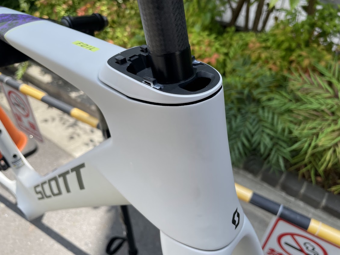 シートポストに取り付ける方式よりも重心位置が低めに、サドル高の変更もケーブル類が干渉しづらいのでやり易いですし、バッテリーを外す際にポジションを変えてしまう心配がないのも強みです!