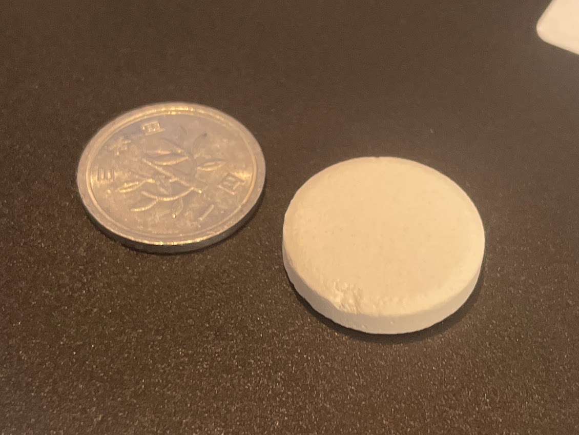 タブレットのサイズは大体一円玉程度。
