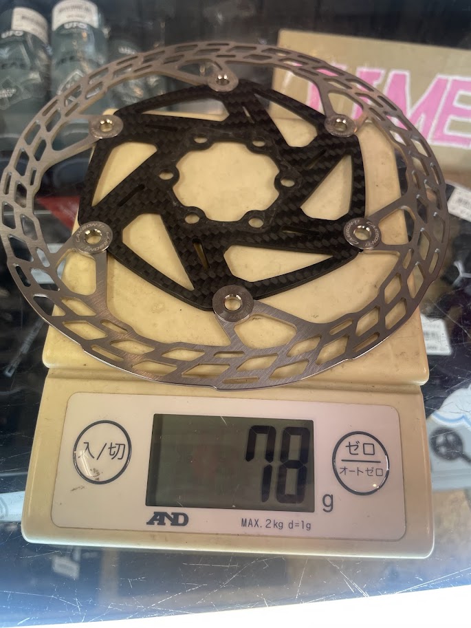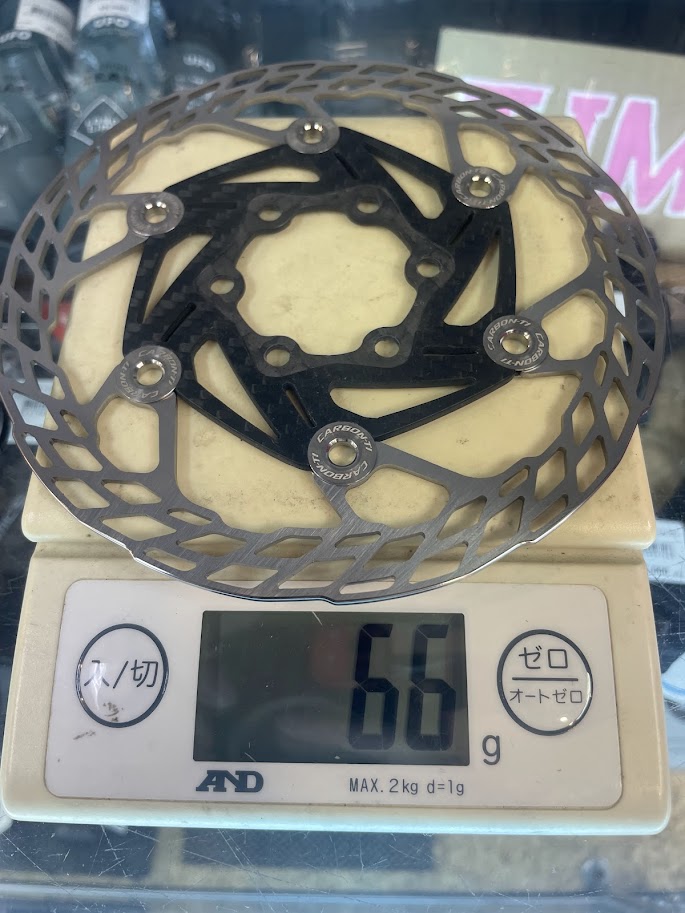 軽さで言えば匹敵するレベルに軽いものは多くありますが、そういったローターは薄く華奢で剛性が低くそれに伴いフィーリングがイマイチな事がほとんど。