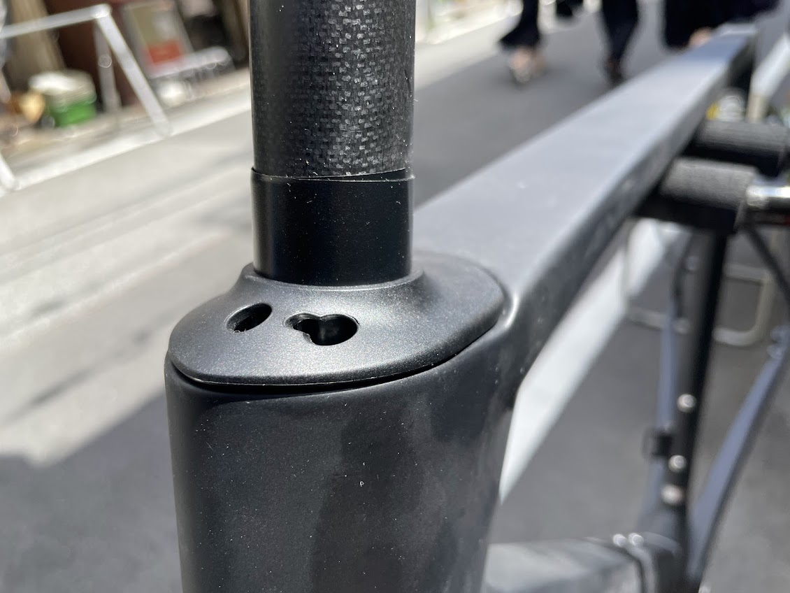 別売りで専用のステムもありますが、超軽量ステムなどで自分らしいカスタムが可能なのは捨てがたい!