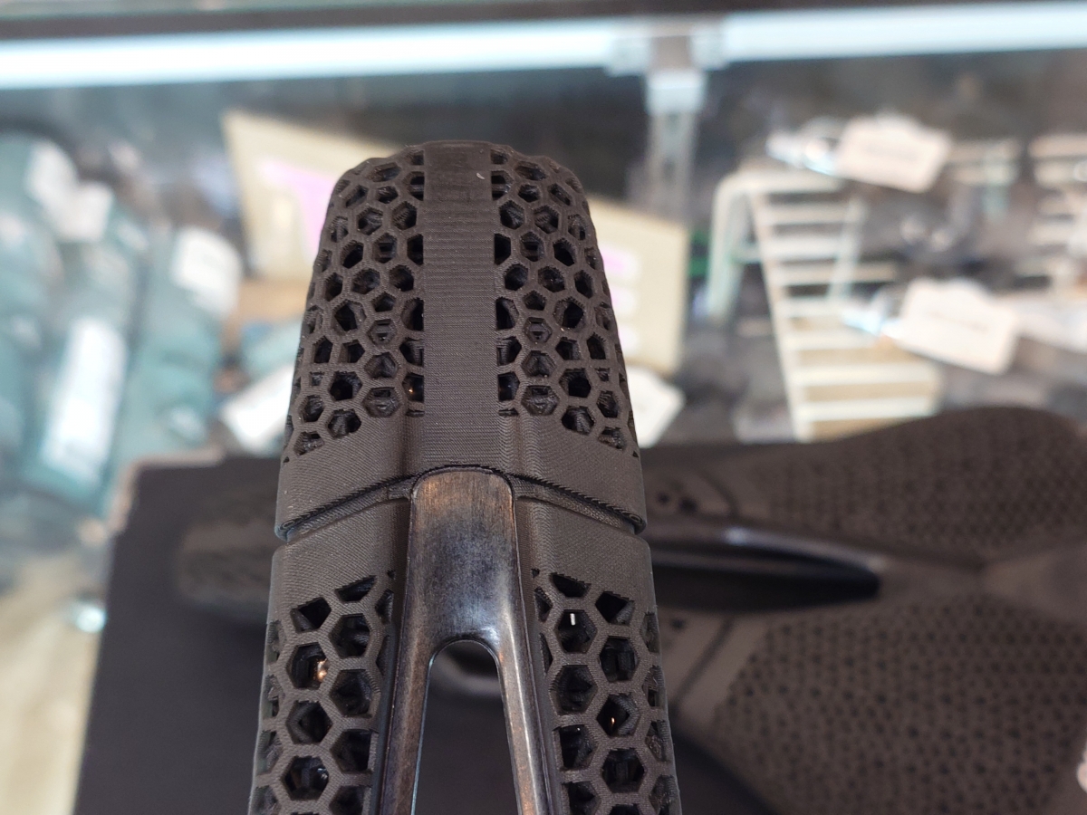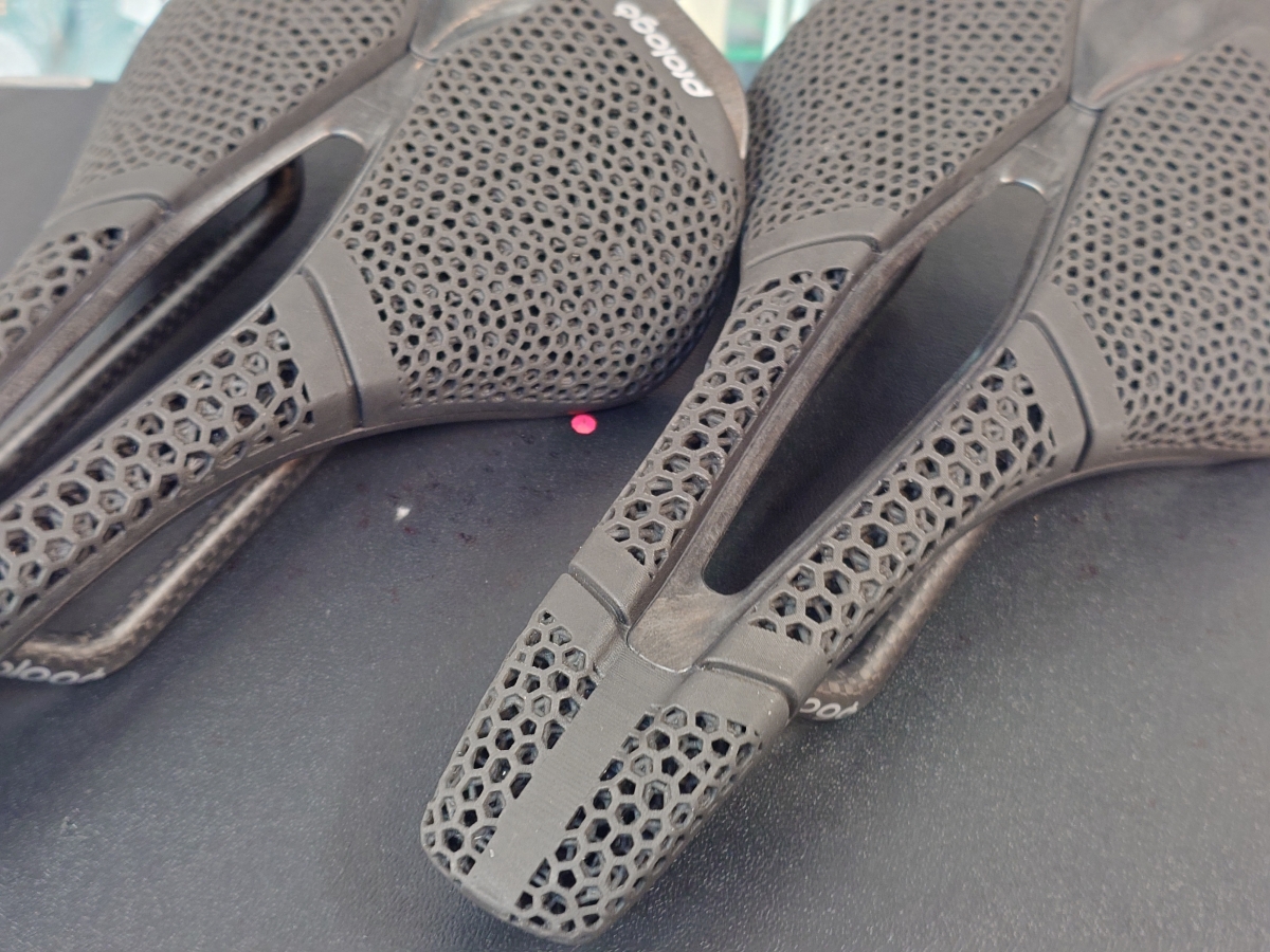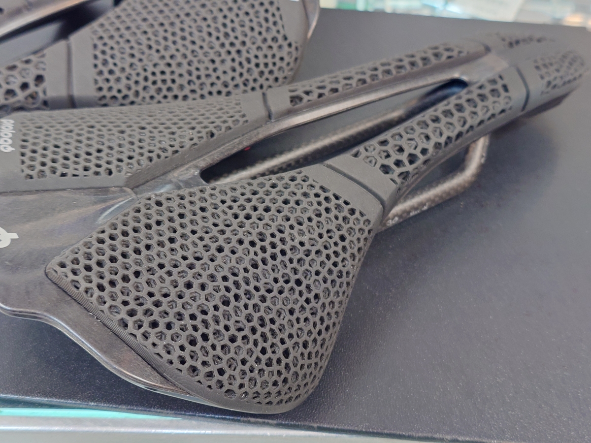 できるだけしっかりとしたパッドで安定感は必要ですが、それでもできる限り座った時に快適に感じるようにできないかと各社が今研究を進めているのが「3Dプリンターで出力したパッド」を採用したいわゆる3Dサドルです。