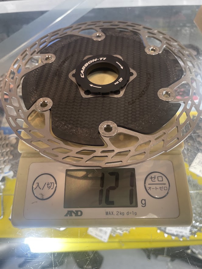 ここまで攻めた造形ながらもロックリングなど含めて121gと一般的なローター並みの重量。