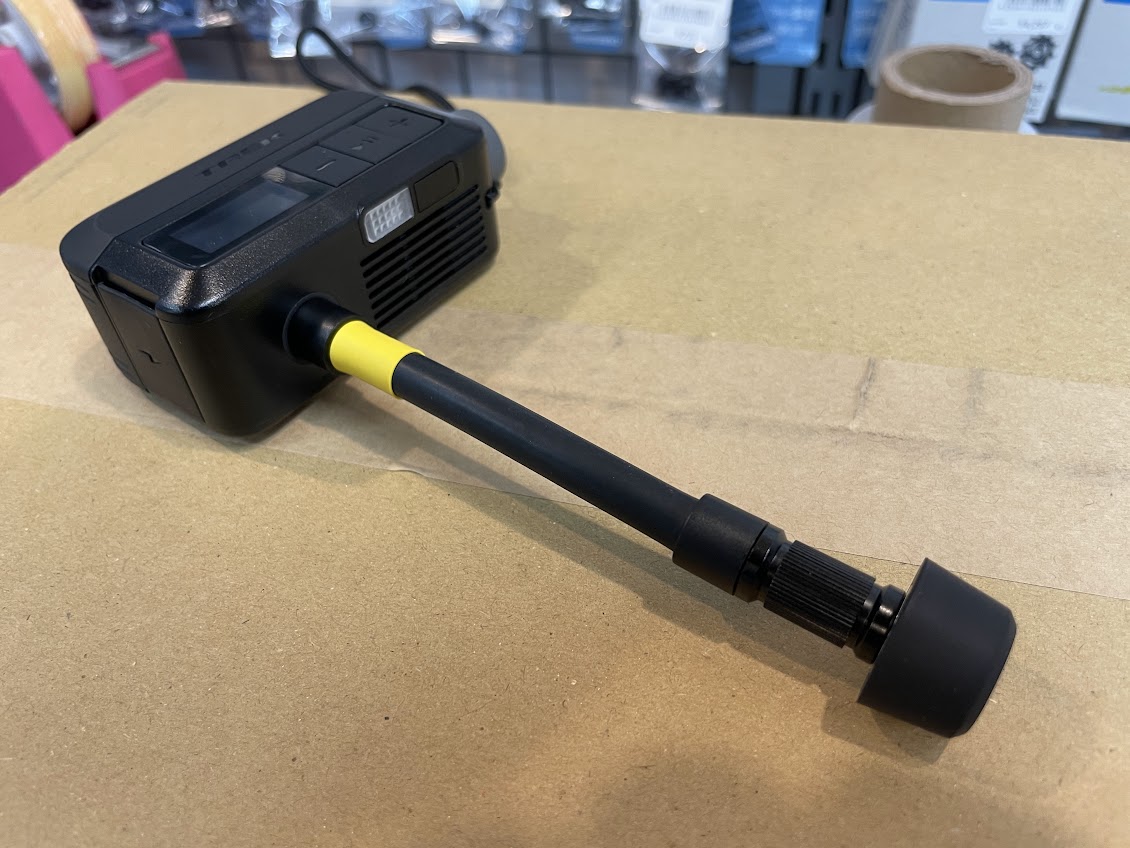 口部分は米式バルブ用のネジが切られており、そこにホースなどを取り付けるスタイル。