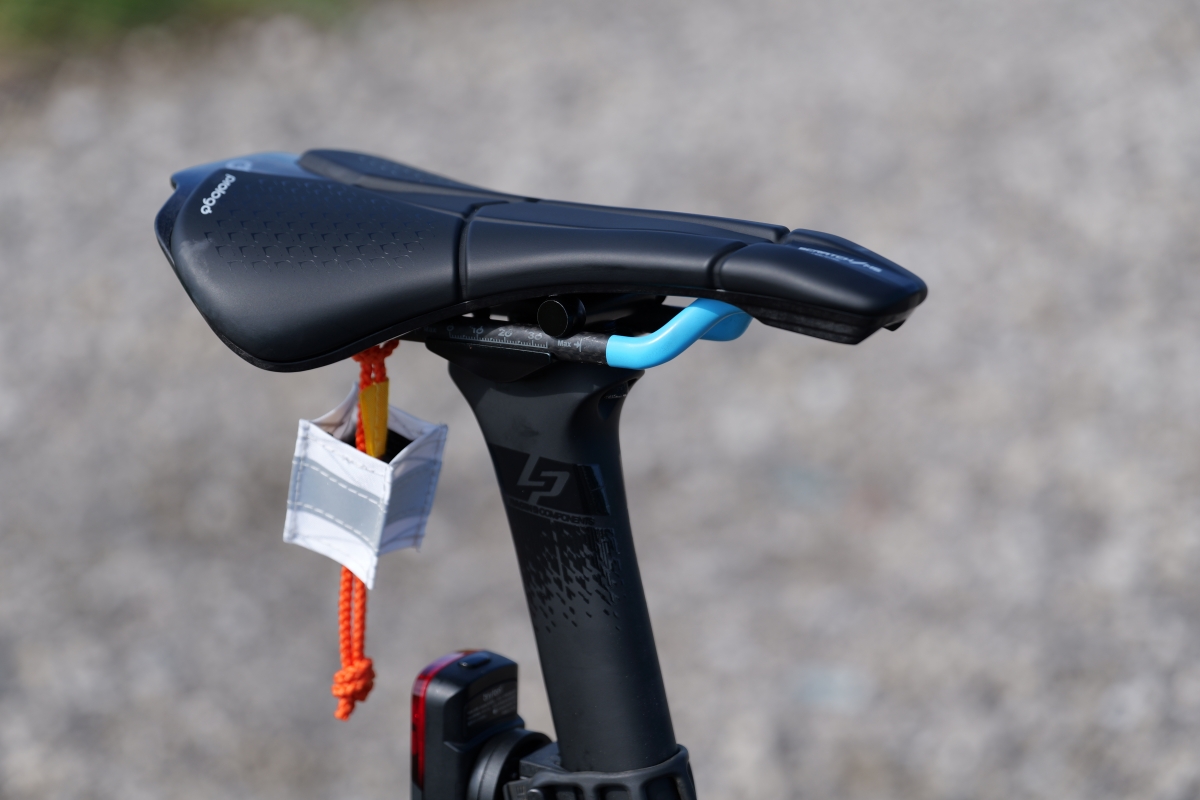基本ポジションを前乗り寄りにしたことにより、時々リラックスするために後ろに下がりたいと思うのですが、このサドルはサドルの後ろのキワまでフラットに下がれるのでロングライドでのポジション移動にもってこいだと思います。