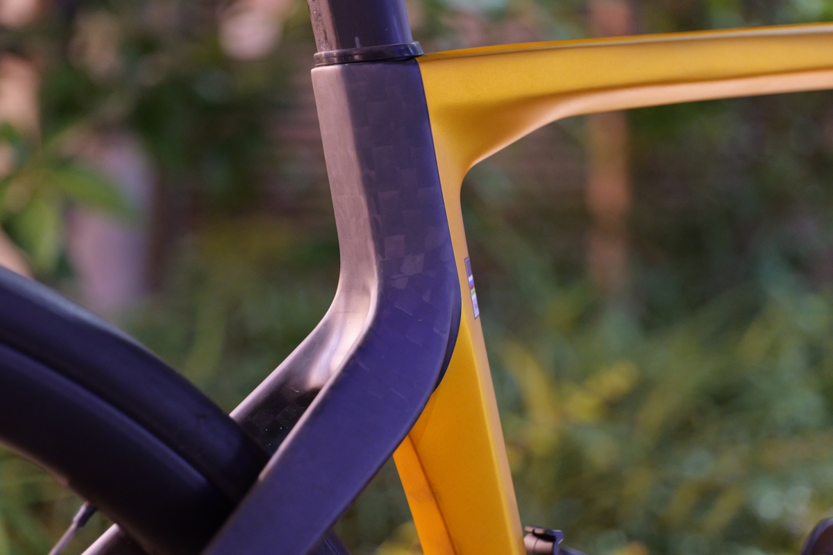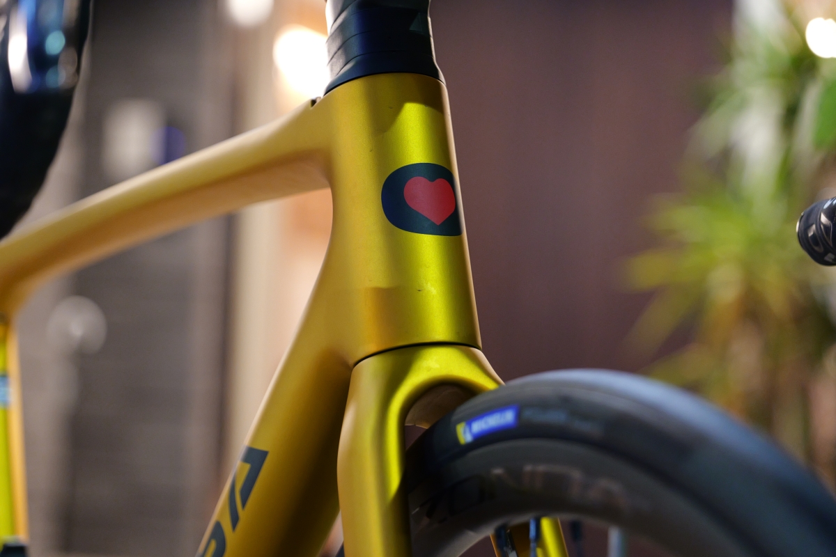 逆に50mmハイト以上のレーシーなホイールと組み合わせる事でフレーム本来の剛性が呼び起こされ爆発的な加速や高強度の粘りみたいなものも感じる事ができると思います。