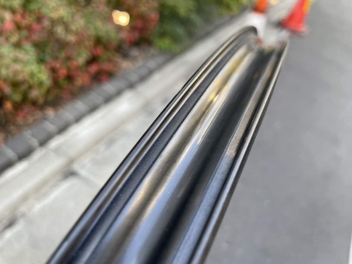 リム内幅は21mmと最近のワイドリムと比べると薄めですが26Cや28Cタイヤでの運用の場合はこのくらいの方が具合は良し!