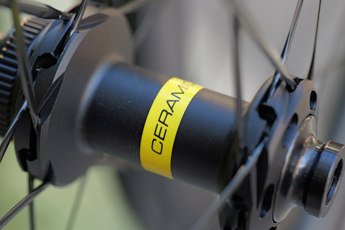 CERAMICと書かれたステッカーが特徴的なハブ。