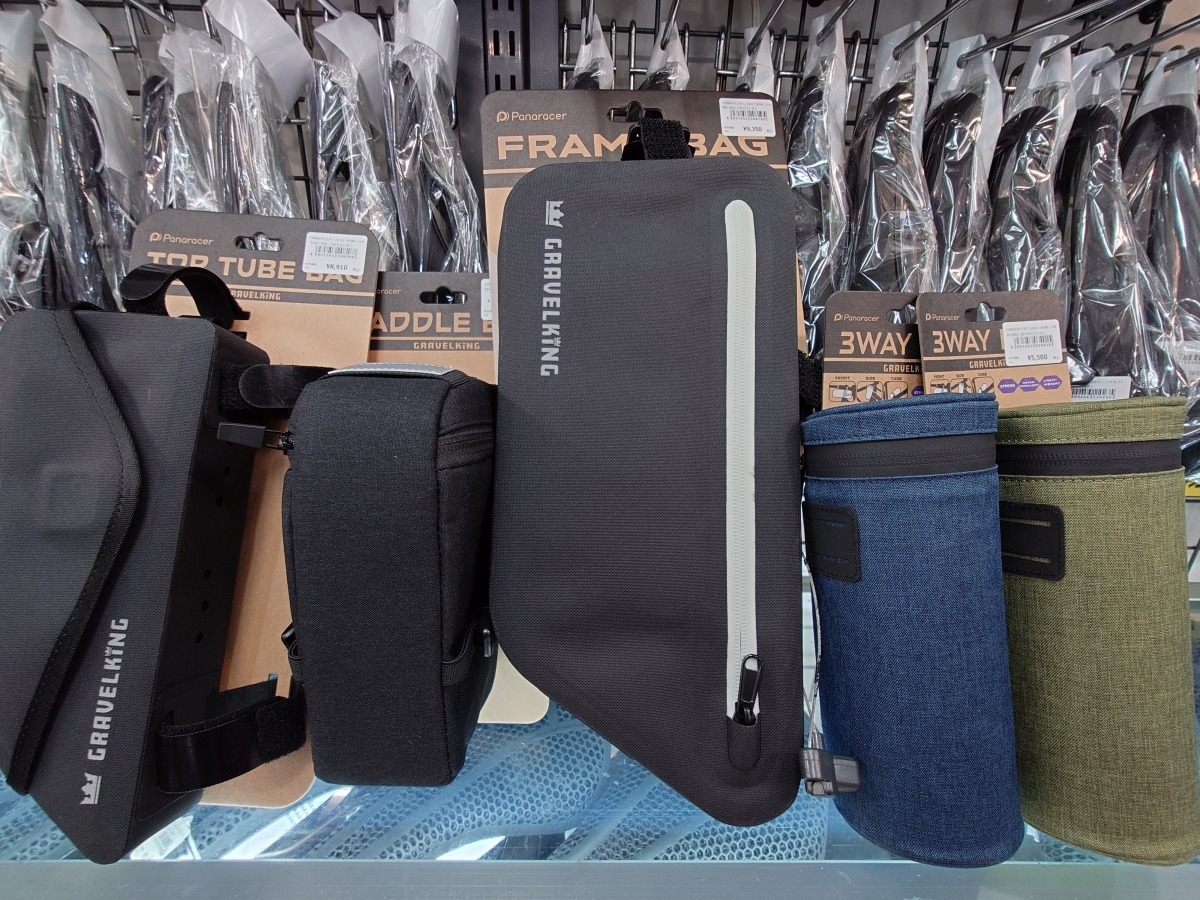グラベルロードでは勿論、最近のバイクとデザインが合いそうなシンプルなバイクパッキングアイテムが多いので、ロードバイクでも使いやすいと思います!