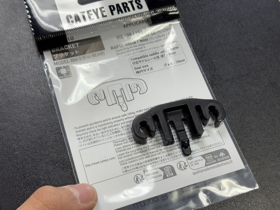 CATEYEのリアライトのソケットマウント用で、サドルレールを用いてマウントするブラケットです。