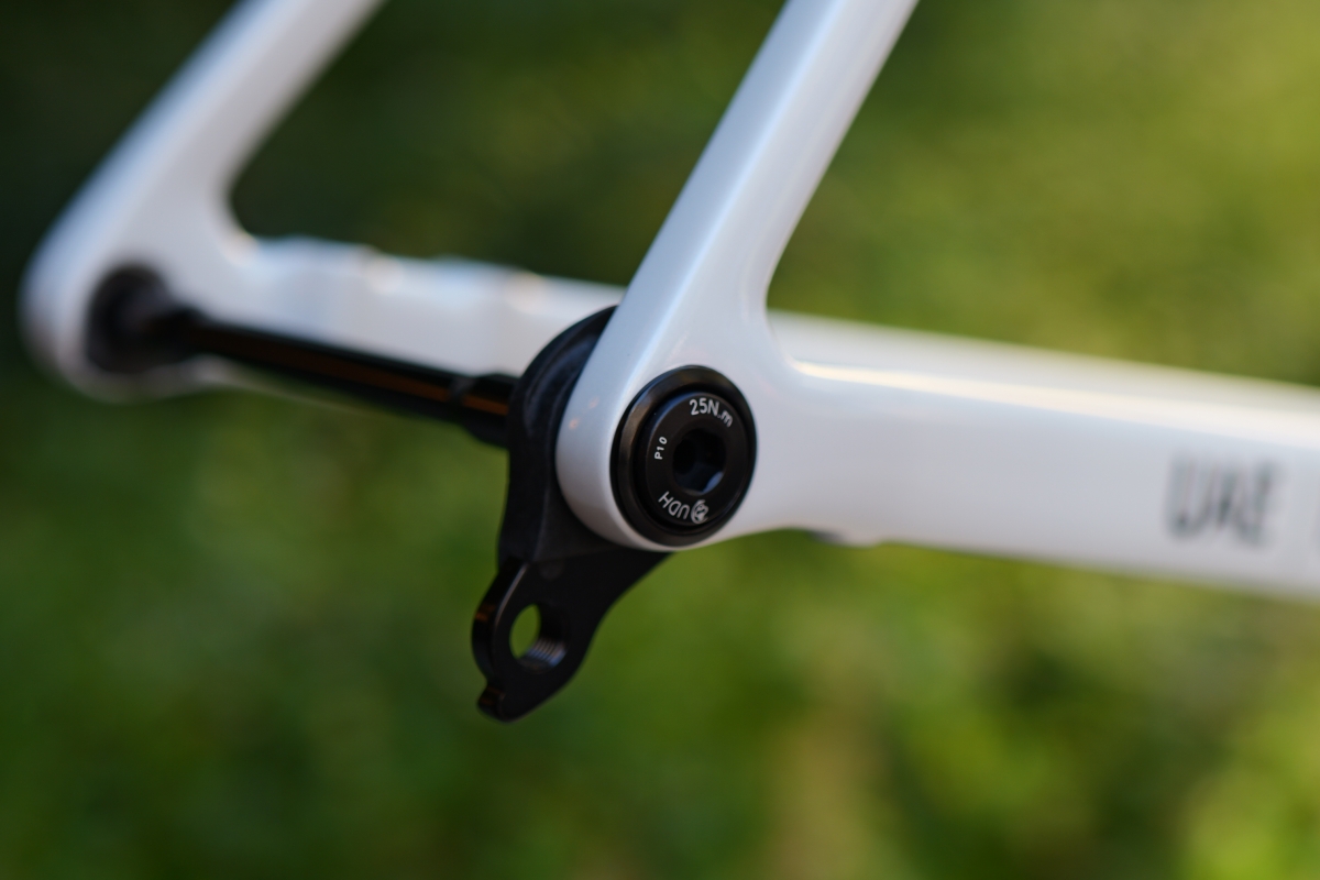 UDH採用なのでカンパニョーロから出ているUDHダイレクトマウントハンガー等もご使用いただけるのでよりシームレスな組みつけも可能です!!