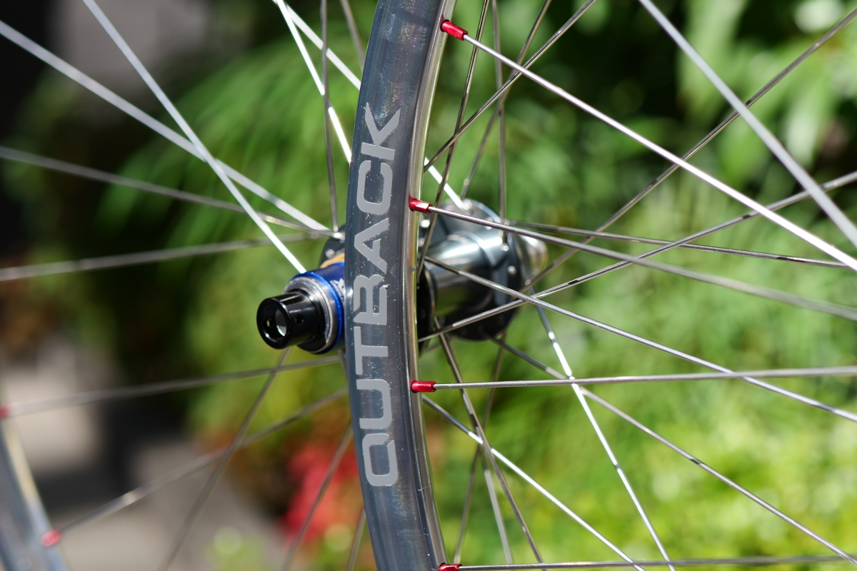 シルバーのリムに、赤いニップル。