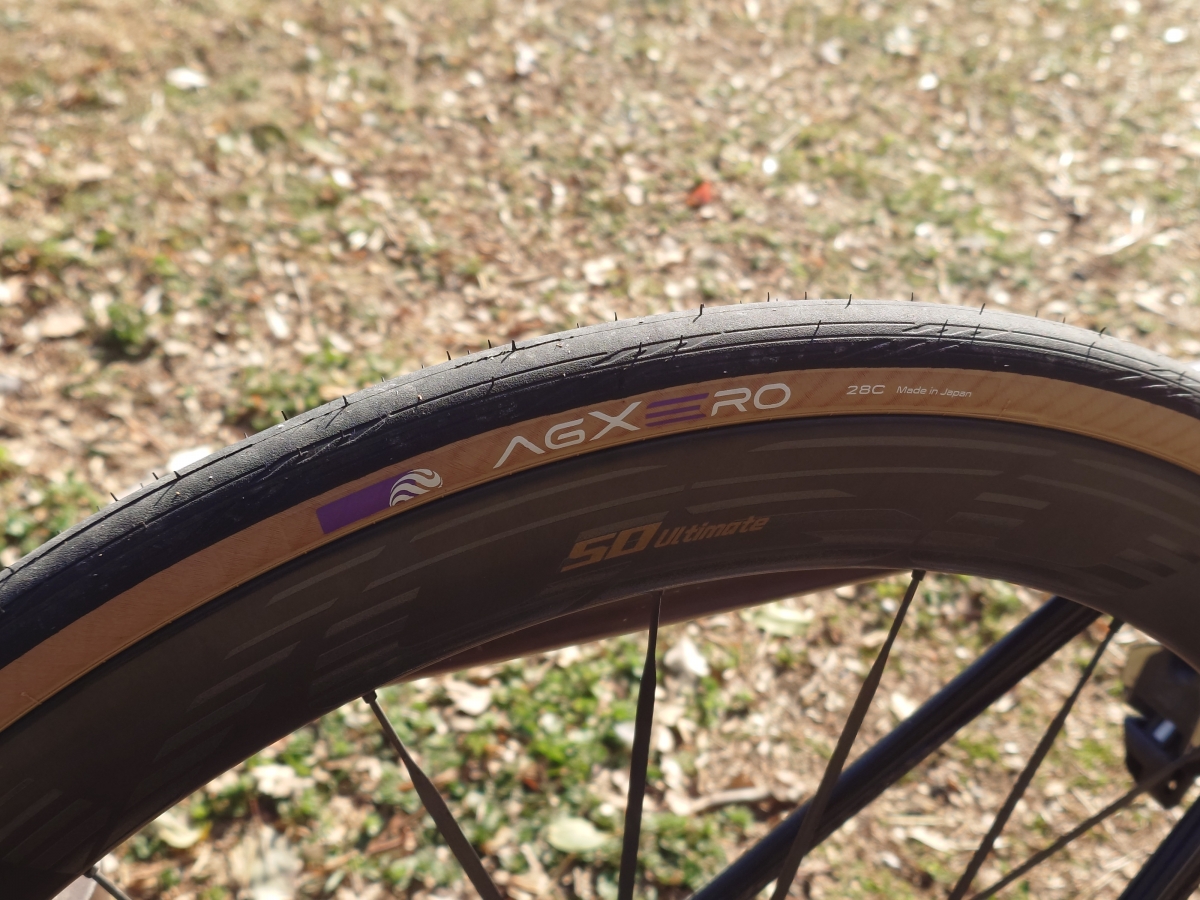 パナレーサーのタイヤの私の印象はもっとねっとりとした路面とのコンタクトが印象なのですが、このAGXEROはコンパウンドが薄いフィルムの様な感じで路面をひっかくような感触がありました。