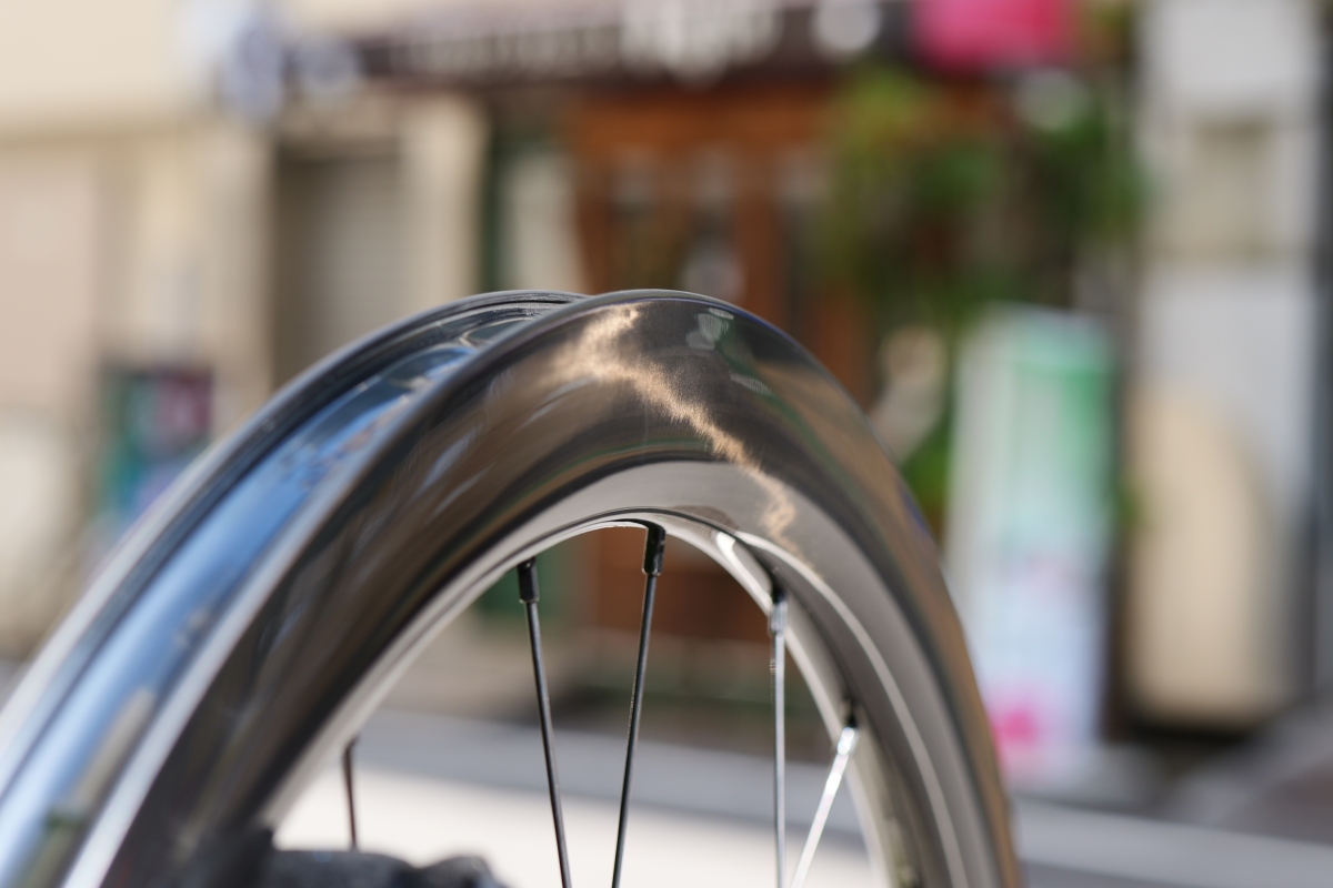 派手ではないですが、非常に洗練されたカーボン繊維の透けて見えるカーボンリムです。