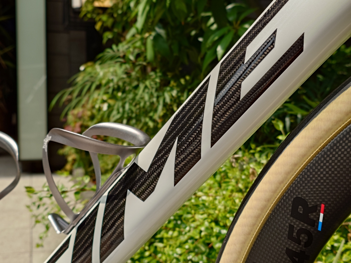 TIMEのフレームはカーボン繊維を編み込んで筒状にすることで作られています。