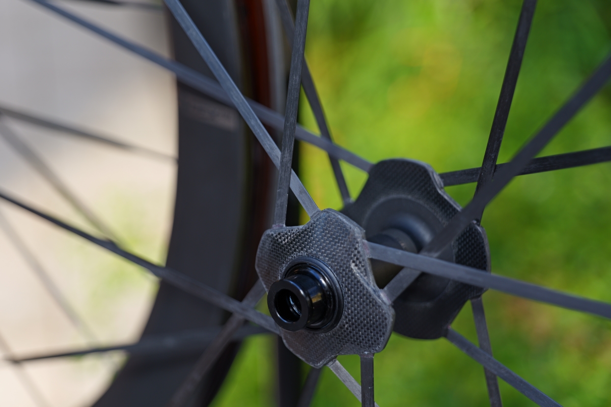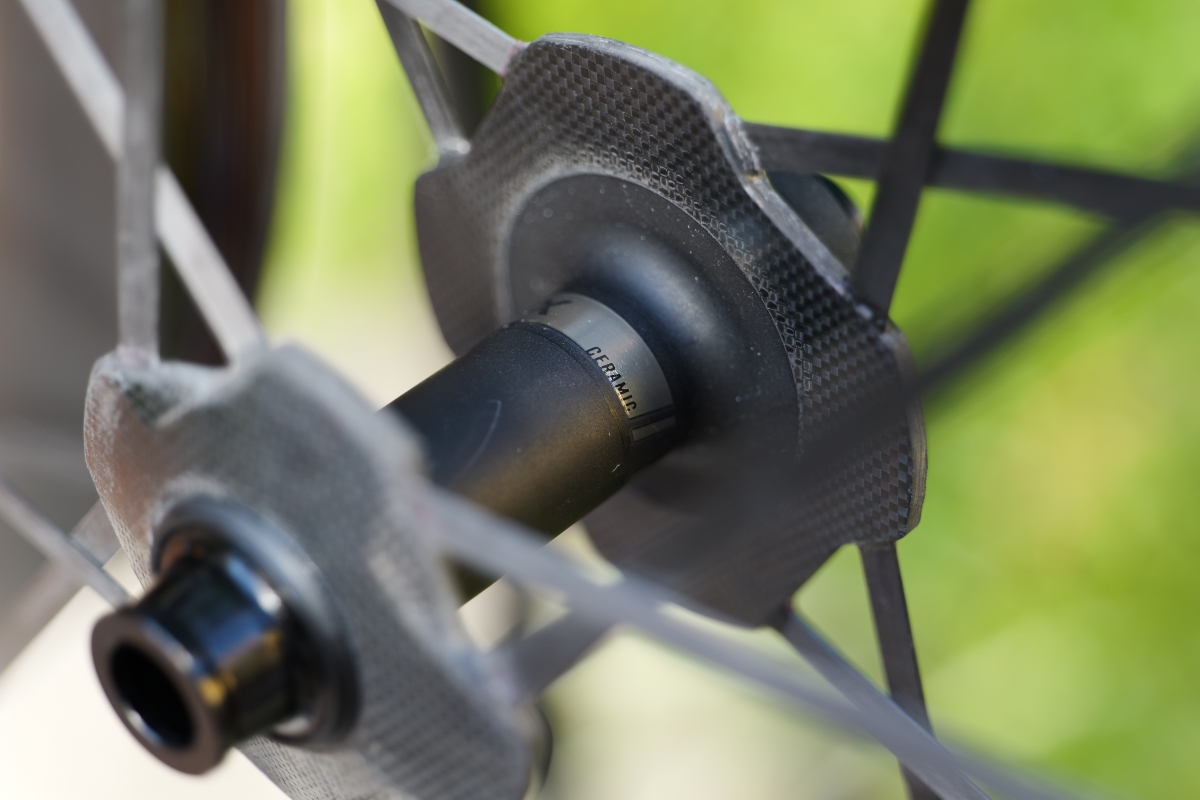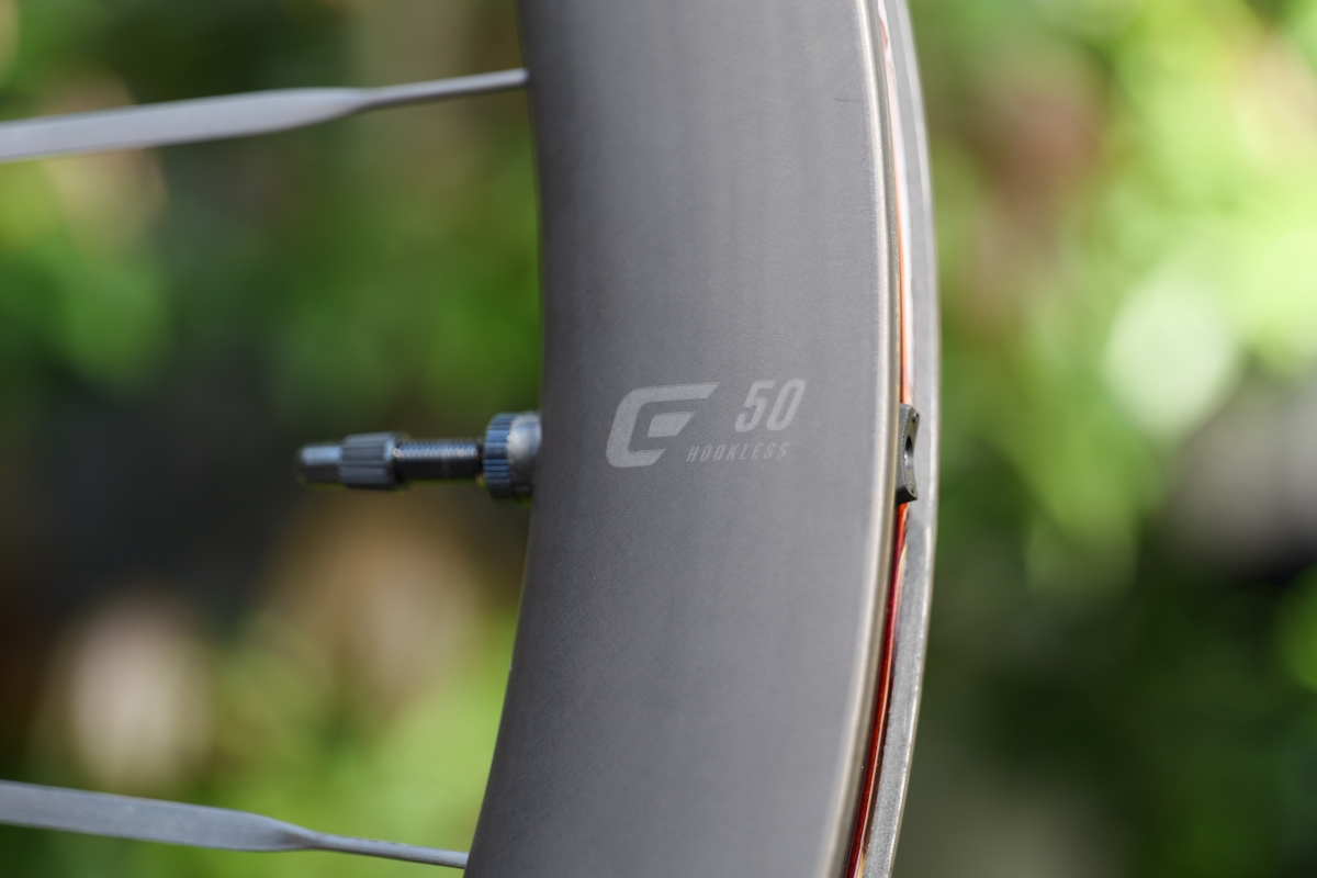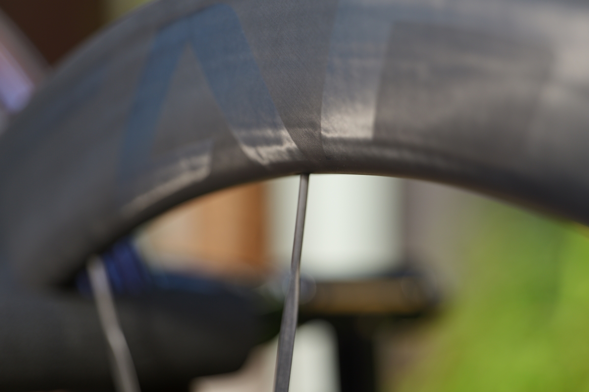 最近ではカーボンスポークは一般的なものになりつつありますが、いわゆるカーボンスポークを使っている多くのホイールとこのMAX 50は異なるものになります。