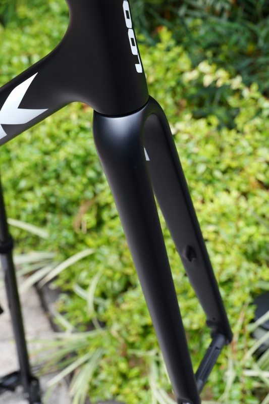 フロントフォークがしっかりとしていることによりリアセクションのしなやかなフレーム特性と相まってダンシングによる加速に向いた剛性バランスを実現しています。