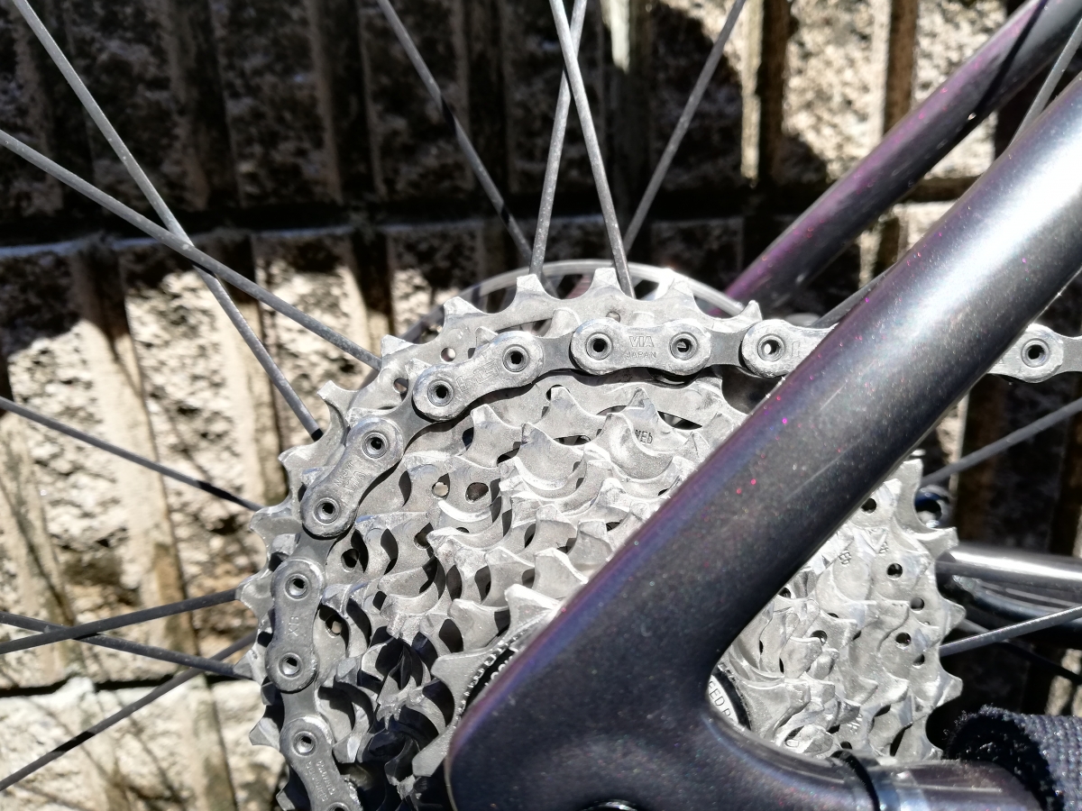 ちなみにチェーンの音はまだ静かですね。