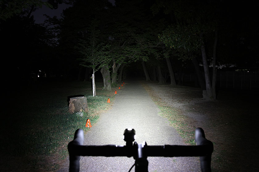 フロントライトはAMPP300を採用。充電式で最大300ルーメンの明るさがあり、暗い場所では約30m先くらいは照らすことができるので普段使いには”ちょうどいい”といえるのではないでしょうか。
