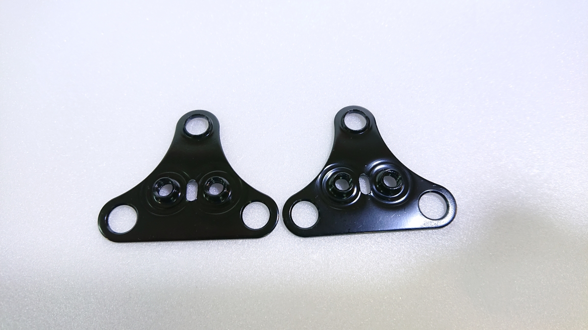 元々ある三つ穴を使用して、SPDクリート用のネジ穴を追加するプレートが付属しています。