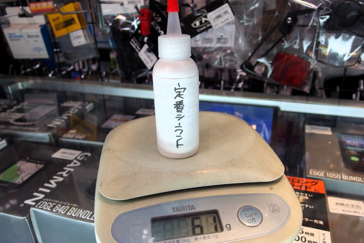 TL/TLRの場合クリンチャーに比べるとタイヤも重量増となり、TLRは空気圧保持のため片側につきおおよそ60mlのシーラントを充填する必要があります。