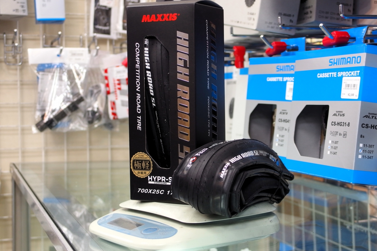 まさかの公表値を下回る軽量性は控えめに言って爆軽。バランス型のHIGH ROADよりもさらに12%転がり抵抗減を実現したハイパーSコンパウンドで重力を置き去りに!