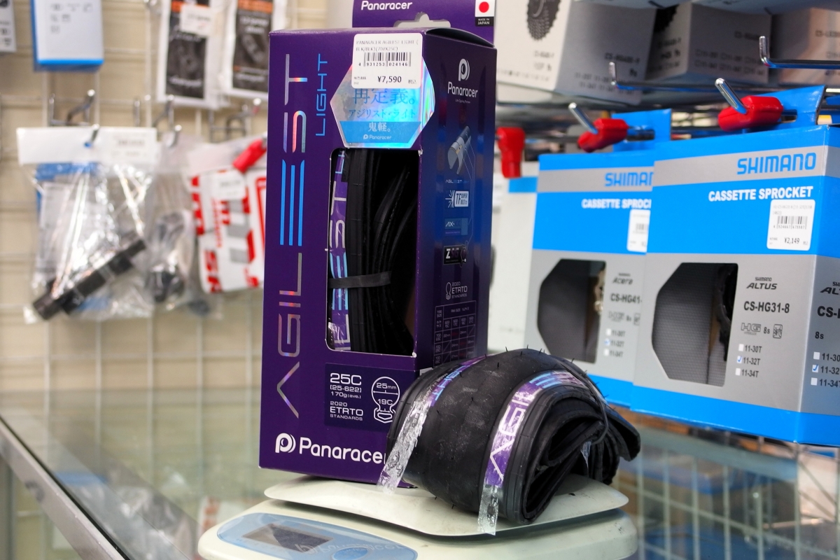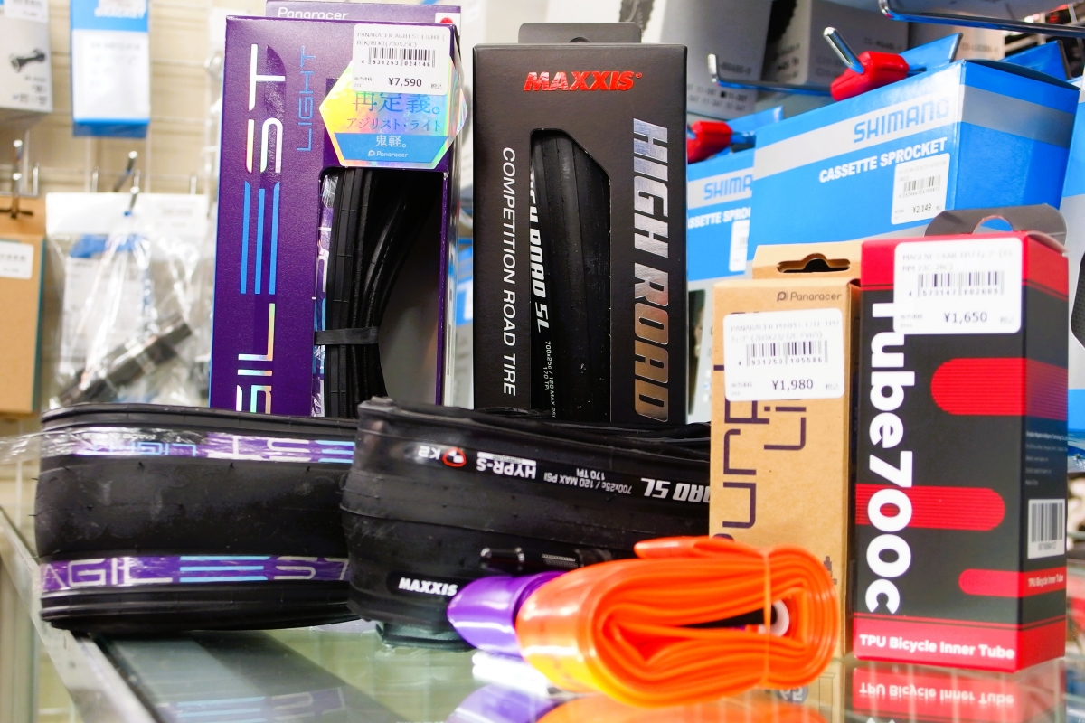 タイヤ、チューブを前後合わせて交換したとしても約2万円ほど。カーボンホイールなどで軽量化を図る場合20万円オーバーと比べてみても1/10でパパっと出来る軽量化。