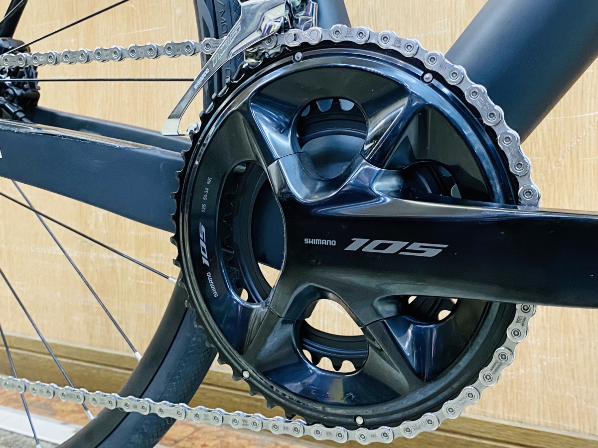 コンポ周りはフル105仕様。機械式の105ではありますが現行シマノの最高段数である12速。ミドルグレードの入り口的なコンポですが充分スポーティな走りを楽しめちゃいます。