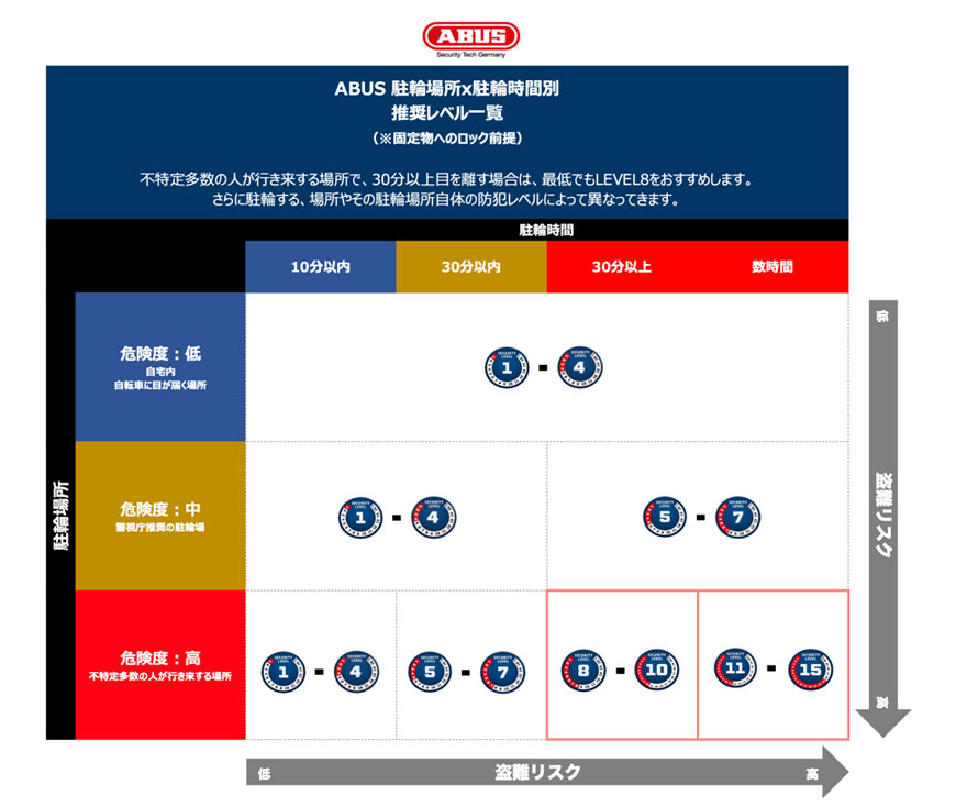 長時間自転車から離れる・複数の人が使う場所こそ盗難の可能性が増加するので、駅の駐輪場や自宅・マンションであっても不特定多数の人間が出入り出来る(出来そう)な場所にこそ、ハイセキュリティーなロックの出番と言えるでしょう。