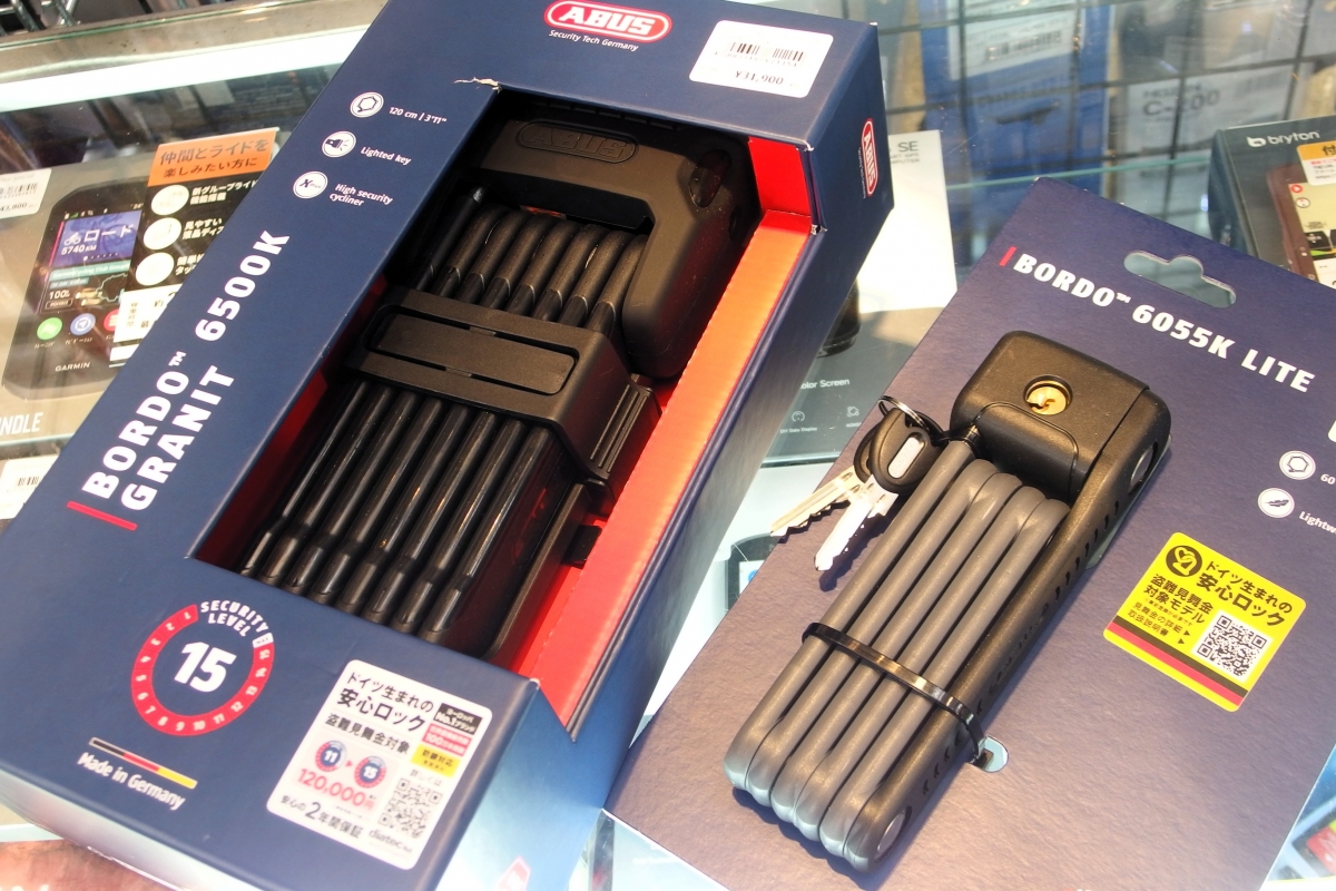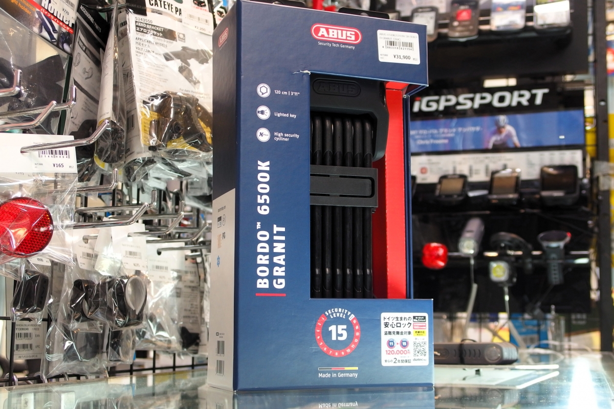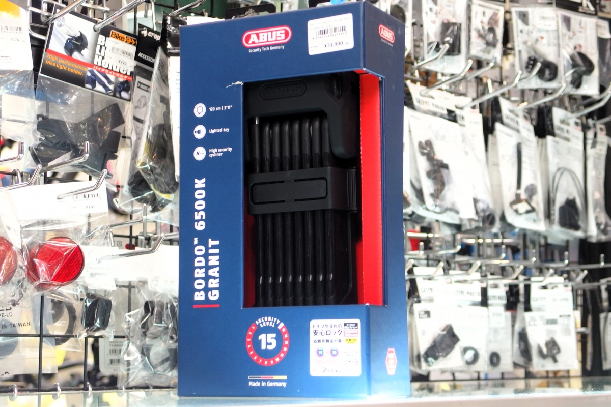 ロックは必ず地球ロック(固定物に共締め!)、盗るのが面倒くさく思わせるのが防犯のコツといえますので、ABUSの最強ロック「BORDO 6500K GRANIT」を有効活用ください♪