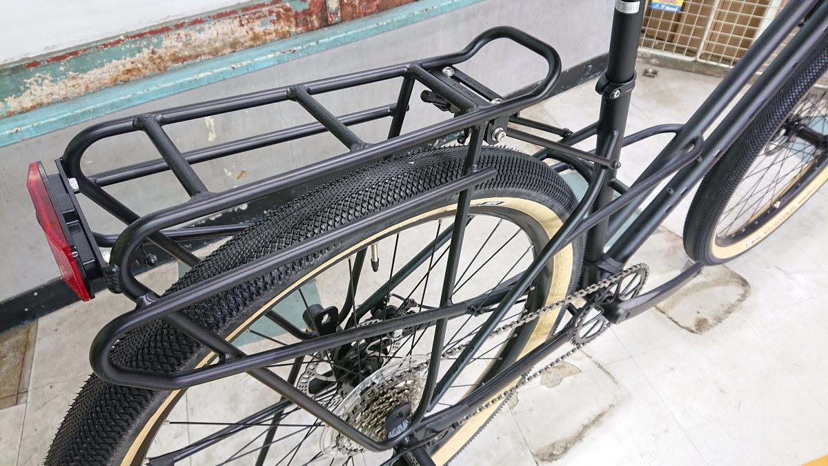 専用のクロモリミキストフレームに、27.5インチの太めのタイヤ、専用キャリアでまとめた街乗りでの段差も気にならないタフな一台です。