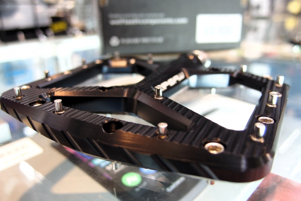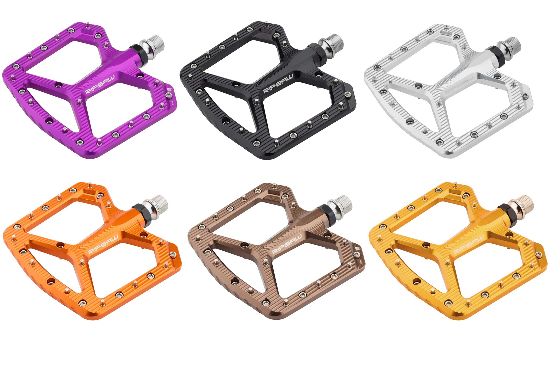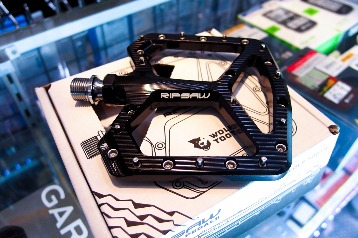 スリムで軽量な大型プラットフォームが目を引くアルミフラットペダル「RIPSAW(リップソー)」。
