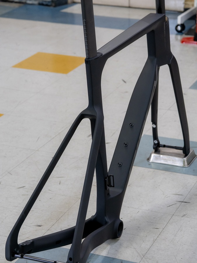 ヘッドチューブかとダウンチューブの間縊れている部分があると思いますがここはフォークから入った流れをダウンチューブですぐに拡散させるFALCNに使われていた技術に近いと見れ同じでないにしろかなりの抵抗を削減していると思います。
