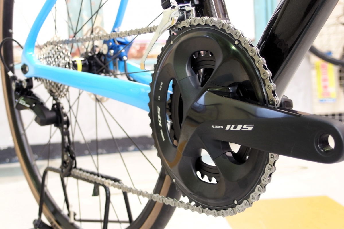 SHIMANO105コンポーネントとメカニカルディスクブレーキを採用した1台。油圧ディスクの取り扱いの煩わしさが無いので、輪行ユースにもピッタリな1台です。