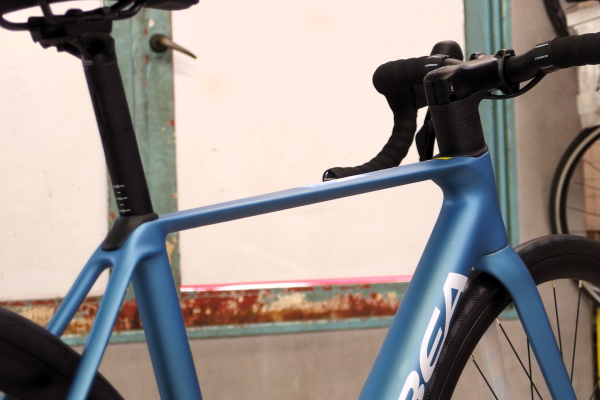 フレーム上部のに位置するパイプはスリムな形状をしており、特に際立つのがトップチューブの薄さ。路面からの突き上げを巧みにいなしつつ、高い横剛性によって直進安定性を維持。快適性と走行性能の両立を実現しています。