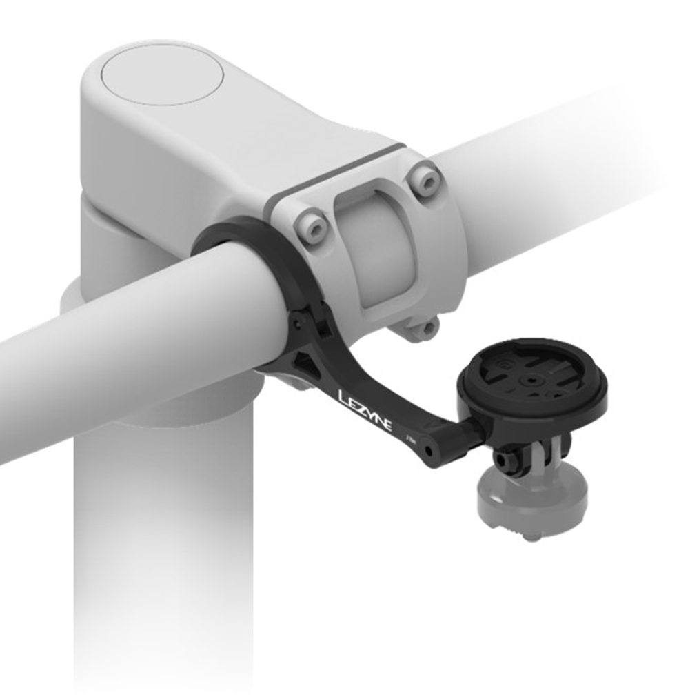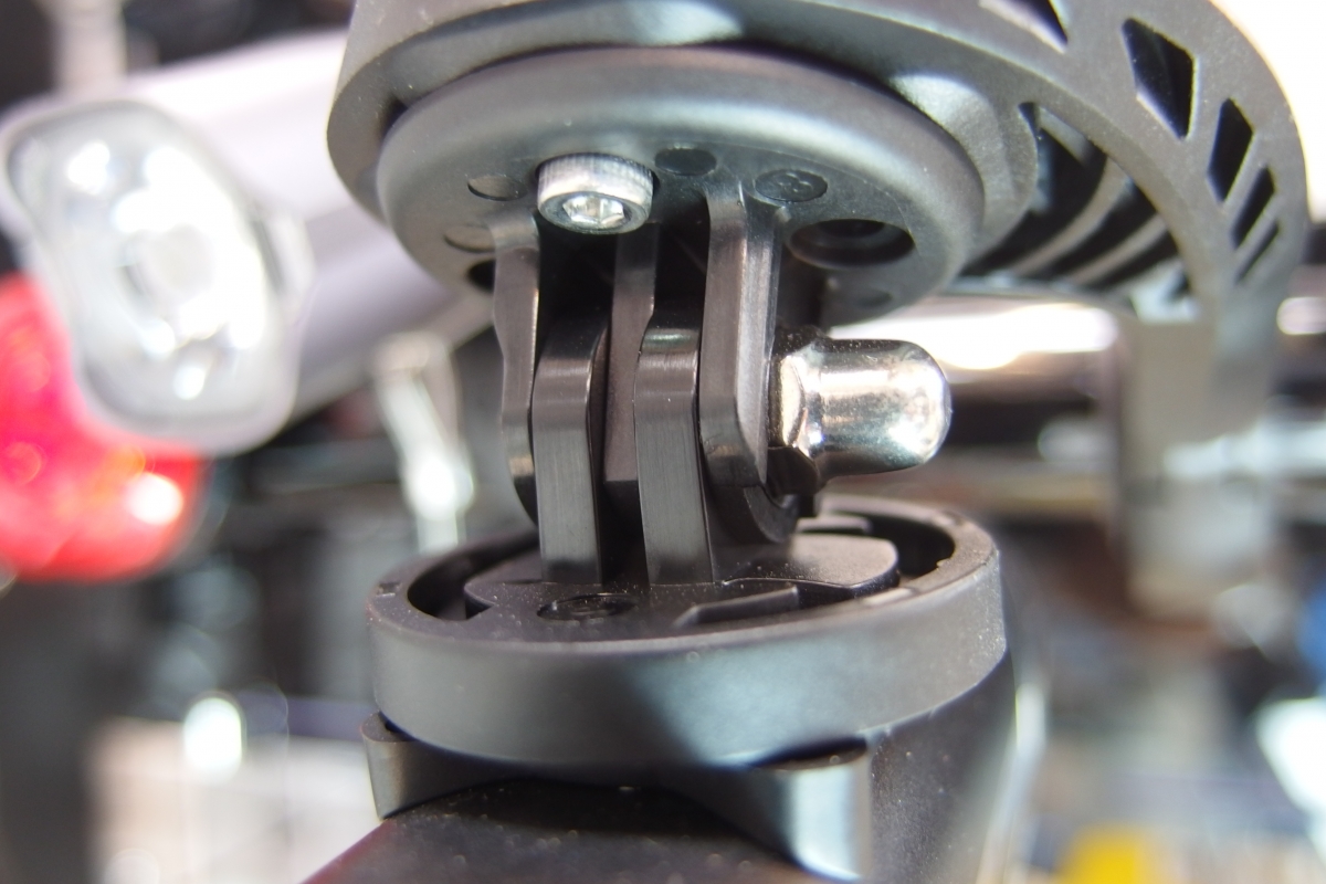 上部にはGARMIN/WAHOOのサイコン対応、下部にはGoPro対応をそれぞれ備えるハンドル取付けマウント。ハンドル全面・中心にサイクルコンピュータ/ライトを集約できるのでコクピット周りは一気にクリアに。