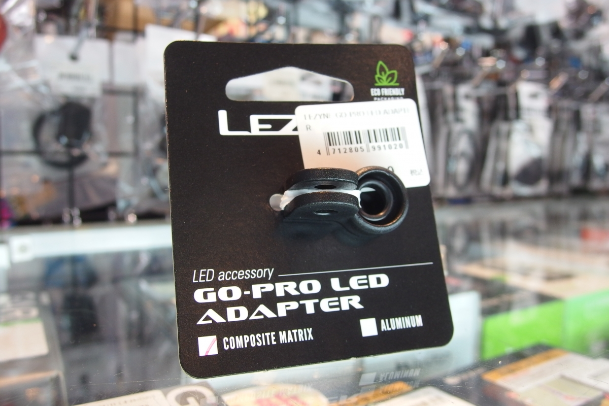 こちらはハンドルに装着するタイプで31.8及び35mm(ゴムスペーサーを用いて)の径に対応。LEZYNEらしい質感もカッコいいマウントになっています。上記「LED Q PRO MOUNT」との組み合わせを推奨、GO-PRO LED ADAPTERとの互換はありません。
