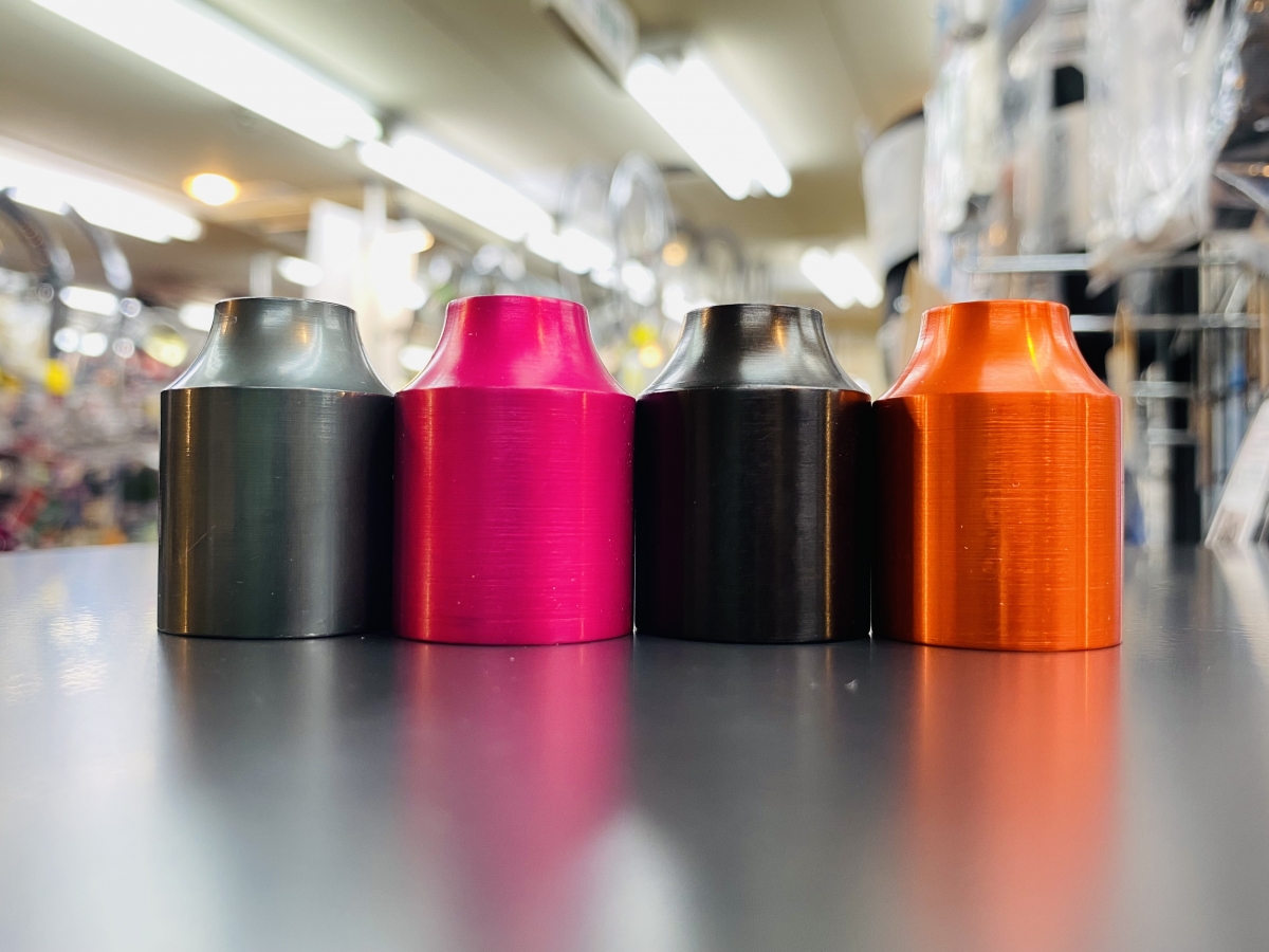 アルマイト仕上げでキレイな発色。単色とスプラッターカラーの2展開。