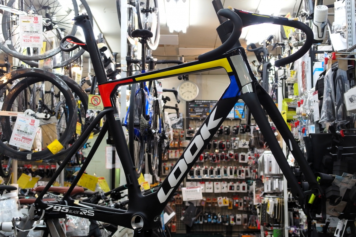 ご案内の「795 BLADE2 RS」はフレームセットでのご案内。走り出すにはコンポーネントやホイール、サドル…などなどが必要。車体全体の印象に大きく影響するホイールを仮で組み込んでみました♪