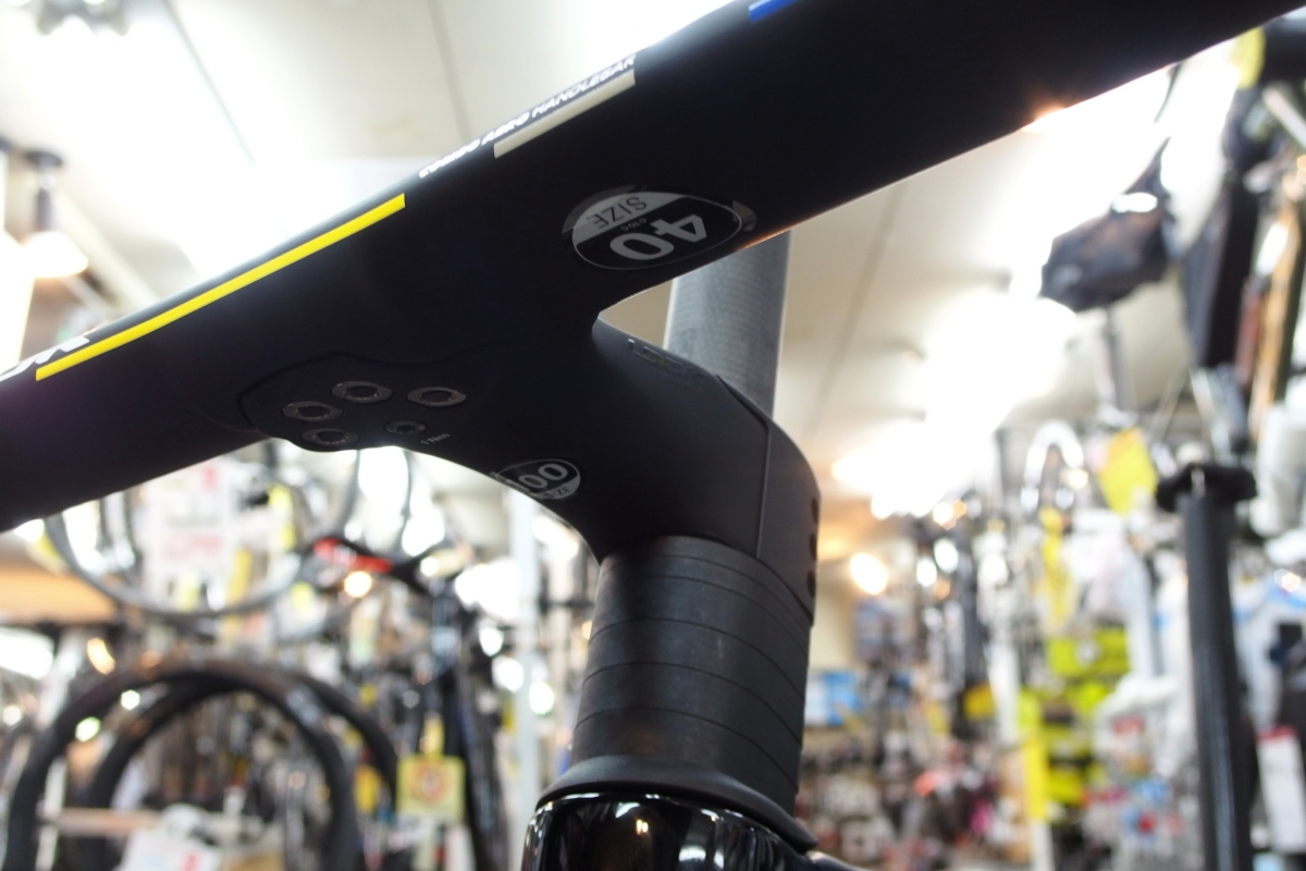 一体型ハンドルのように段差を極力省いたデザインですがセパレート式を採用。ステム長・ハンドル幅それぞれのサイズ変更も容易となっており、乗り手に合わせた細かなセッティングも可能。空力性能と調整の自由度を両立した実戦向きの仕様となっております。