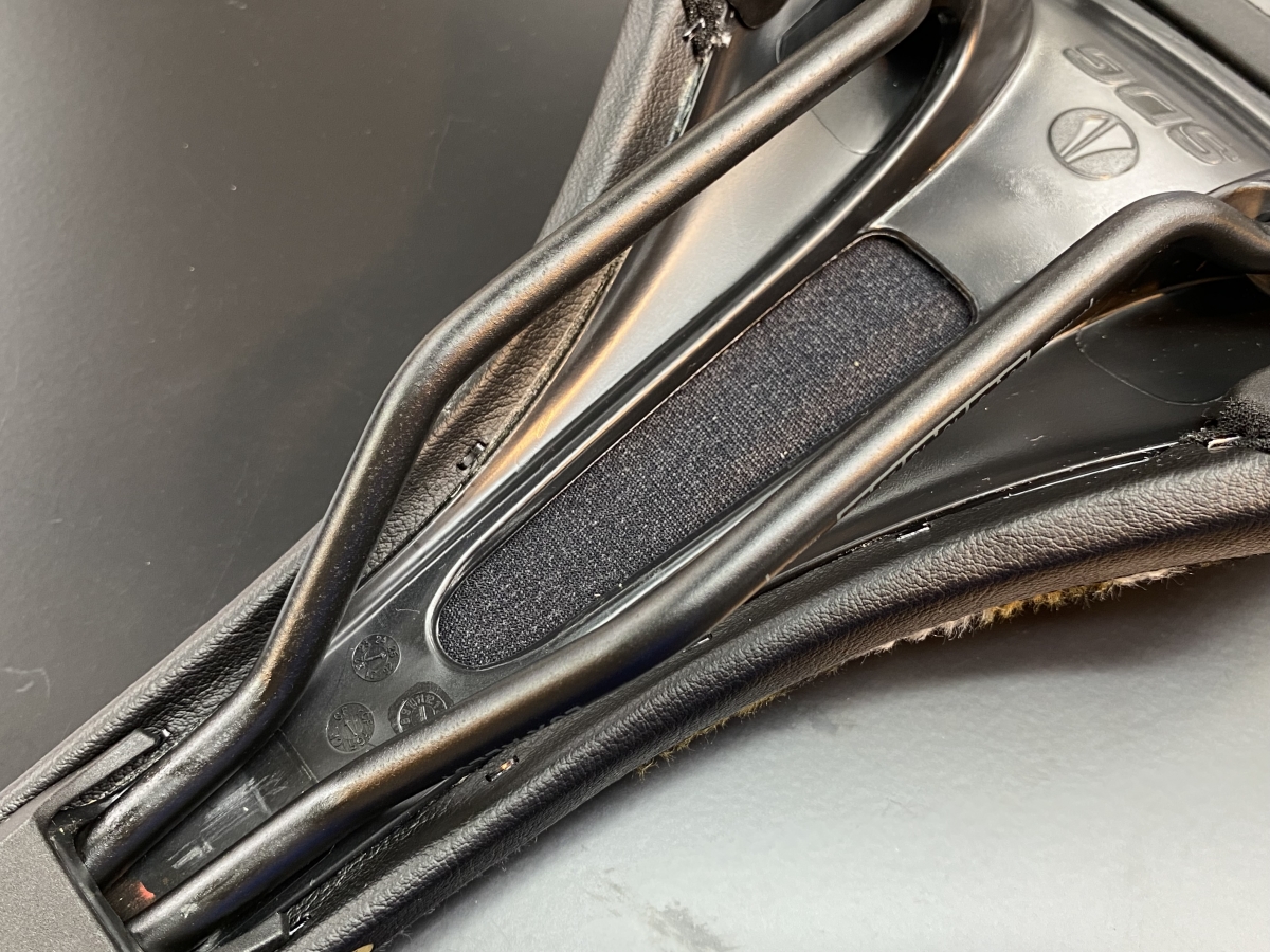 圧迫感が軽減するように裏からみるとベースがくり抜かれているのが分かると思います。見た目の派手さだけじゃなくて、ちゃんと座り心地も考えられているのも名作サドルであるところ