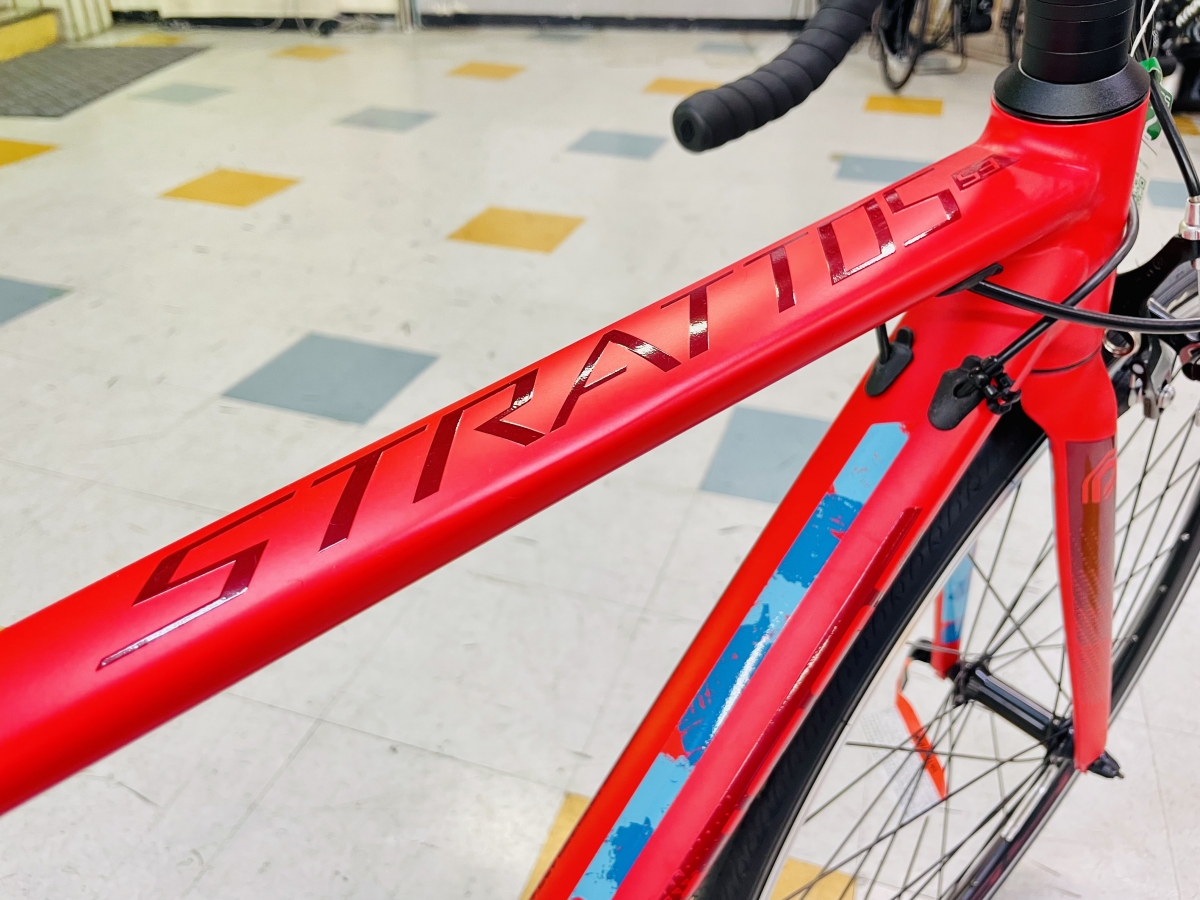 コンポーネントはシマノ「SORA」をメインに搭載、9速仕様で上位モデル譲りのスムーズな動作ながら、コストパフォーマンスの高さが魅力です。